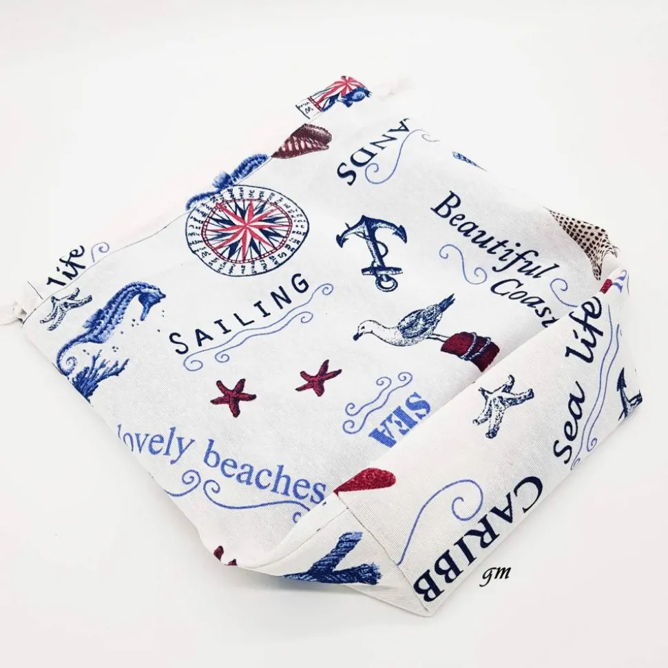 Der Stoffbeutel mit maritimem Muster ist nicht nur ein echter Hingucker, sondern auch besonders wiederverwendbar und hygienisch, da Du ihn einfach waschen kannst.