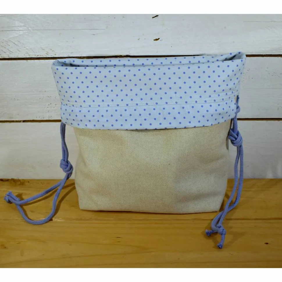mit 2 blauen Baumwollkordeln kann der Beutel geschlossen werden