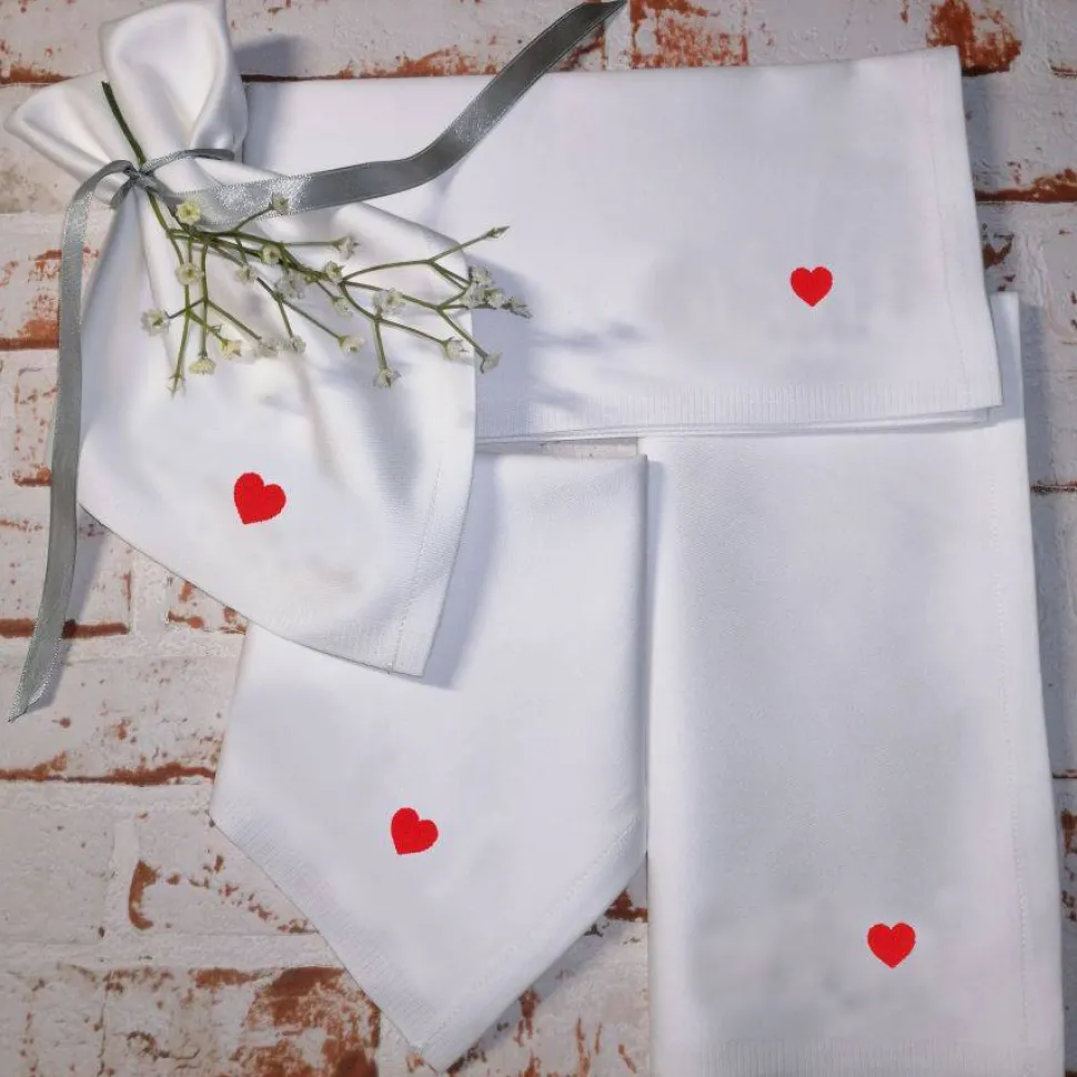 Satinband ist nicht in Lieferumfang. Lieferumfang nur Stoffservietten mit Herz bestickt!