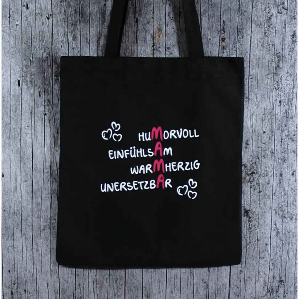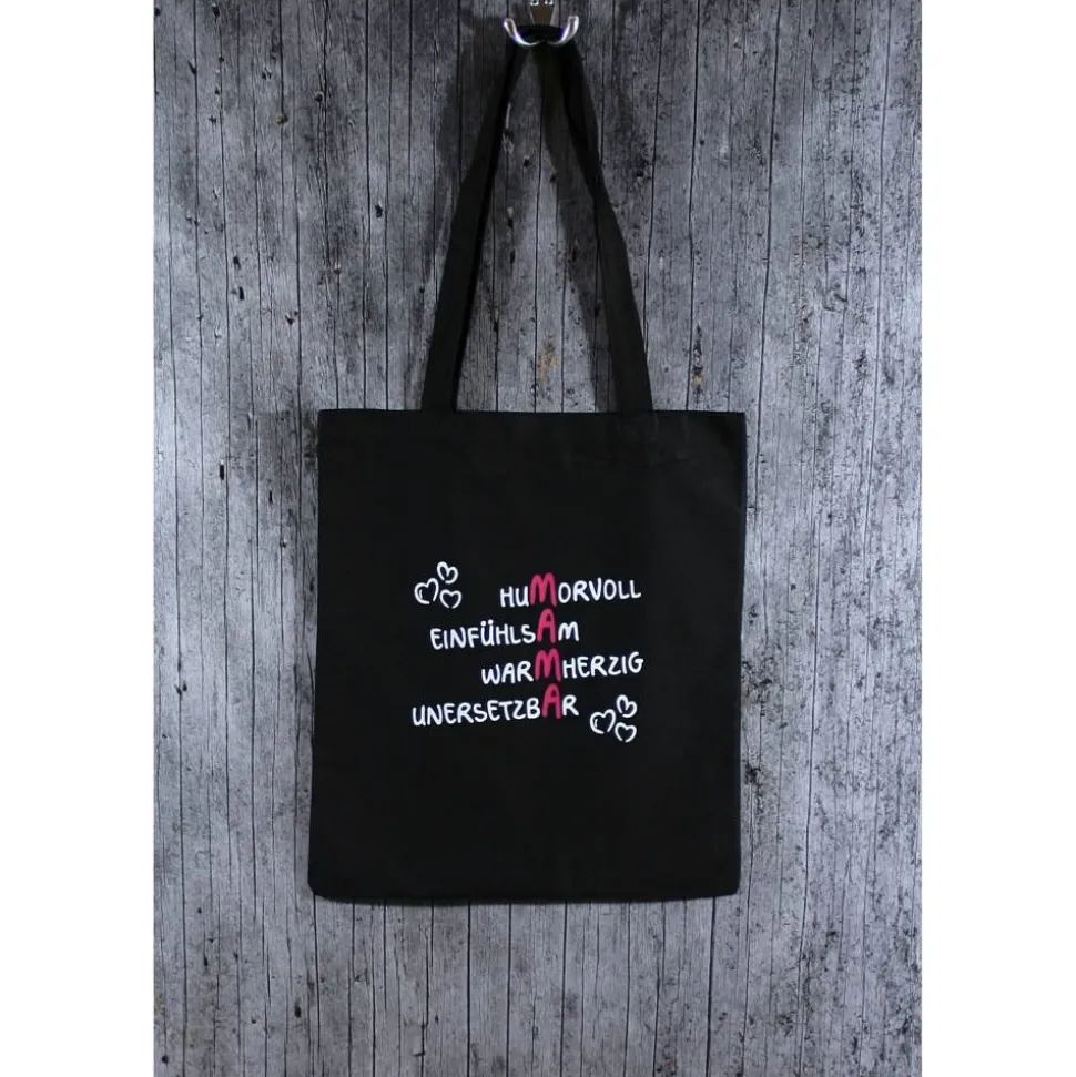 schwarze Baumwolltasche MAMA2 mit langen Henkeln,