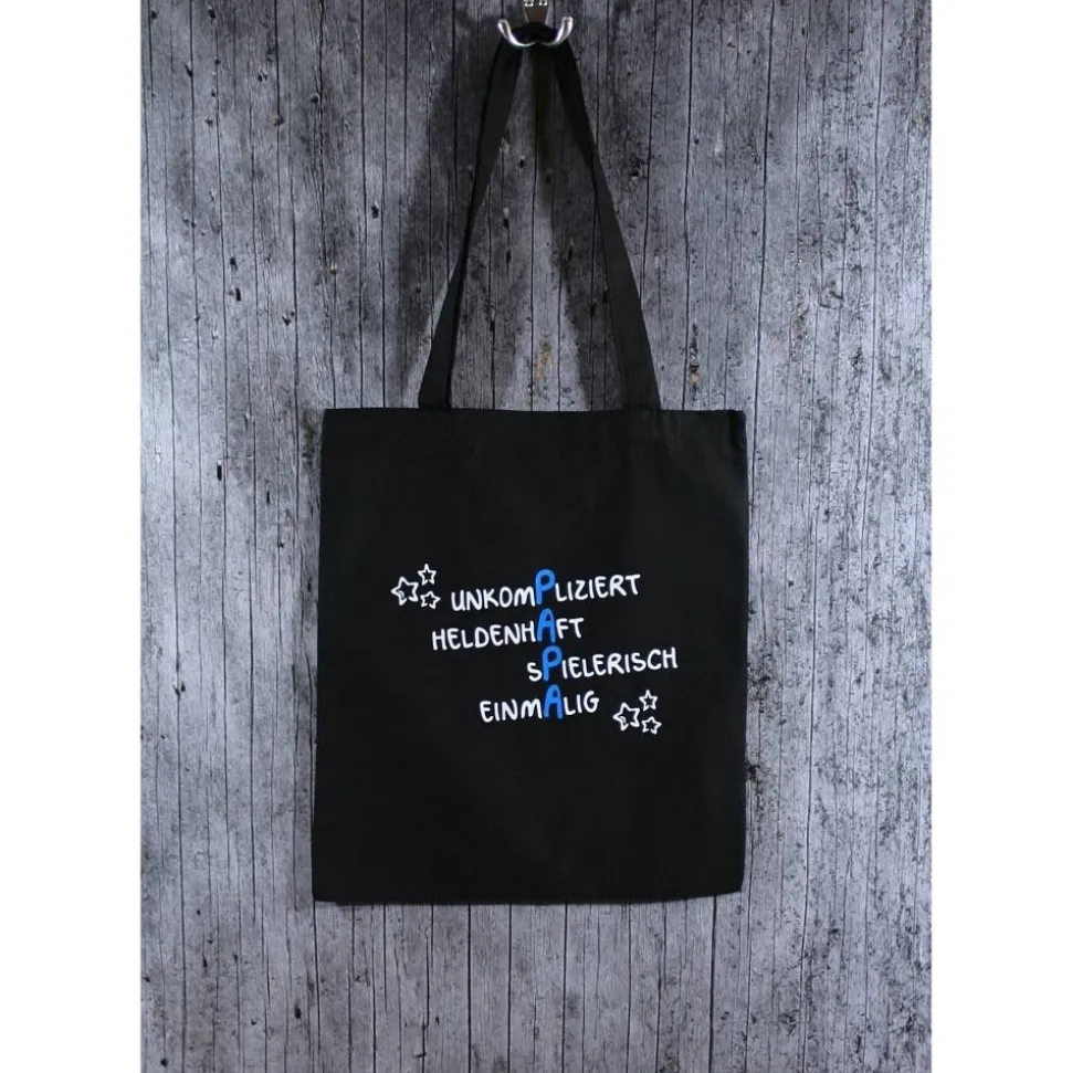 schwarze Baumwolltasche PAPA2 mit langen Henkeln,