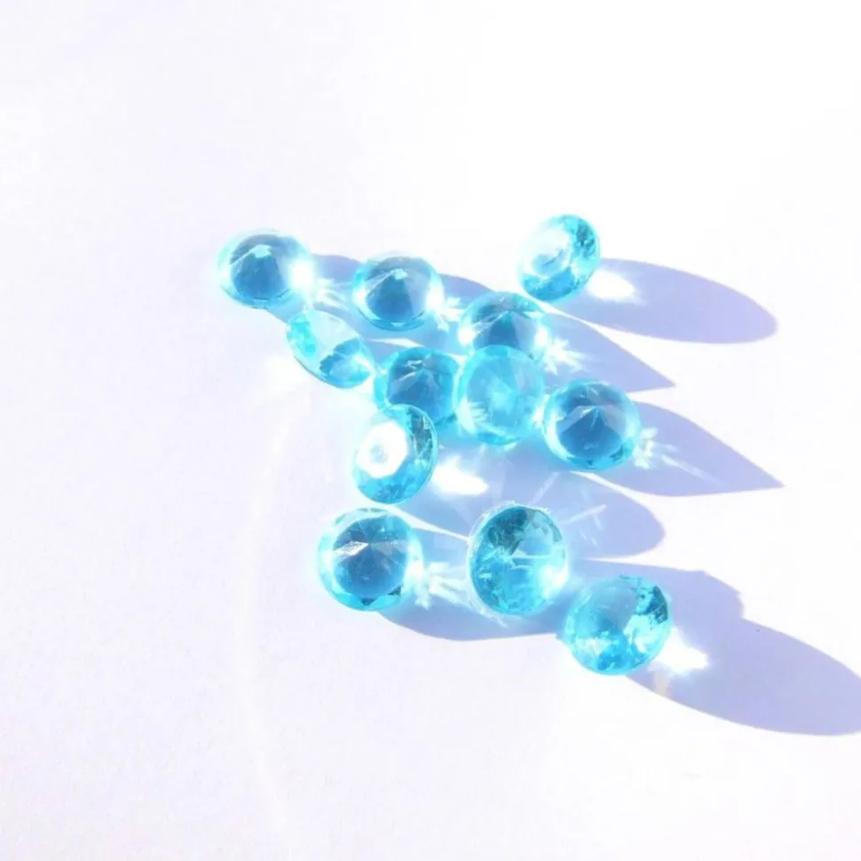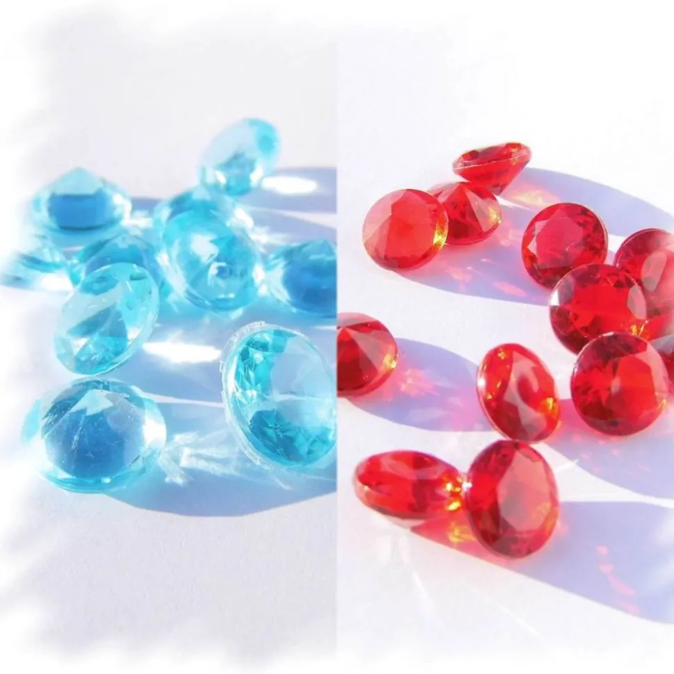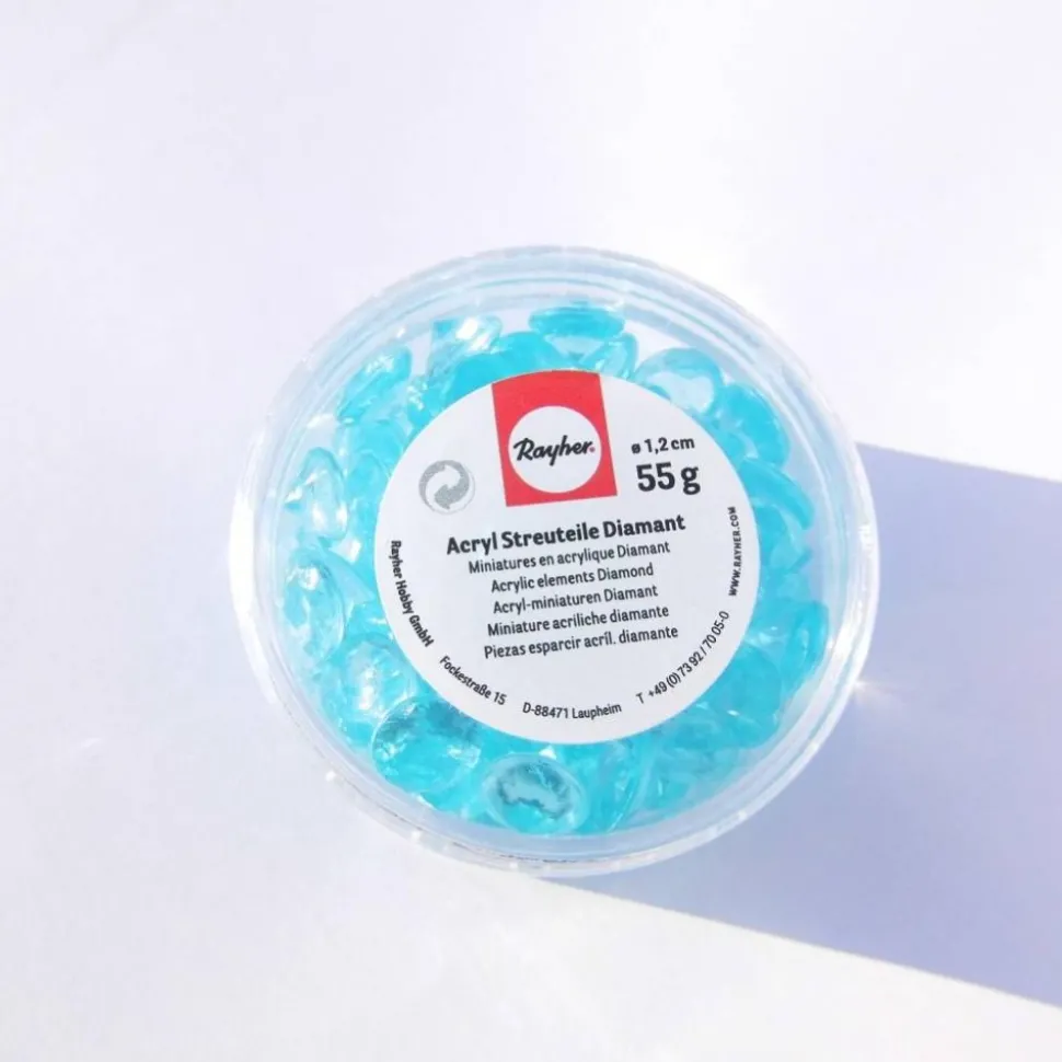 Die Streuteile stehen in 2 Farben zur Verfügung. Verpackt sind die Dekosteine in einer runden Dose zu 55 g. Die Acrylsteinchen sind ca. 1,2 cm groß. Mit den Dekodiamanten erhält man eine schillernde Tischdeko.