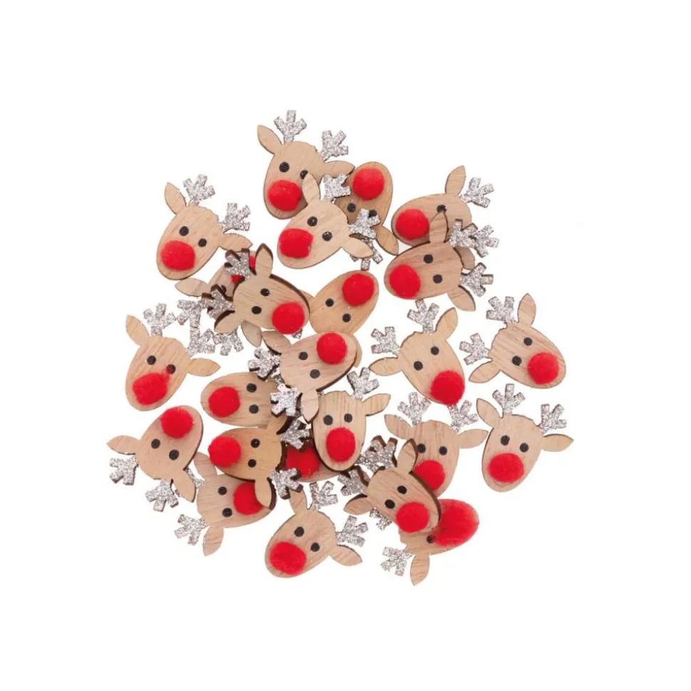 Die kleinen Holzstreuer Rentier sind ca. 23 x 23 mm groß. Die glitzernden Rentier-Streuteile sind ideal für die Deko zur Weihnachtszeit. Mit den kleinen Rentieren lassen sich Geschenkverpackungen verzieren, der Adventskranz gestalten oder eine schöne Dekoration in einer Schale arrangieren.