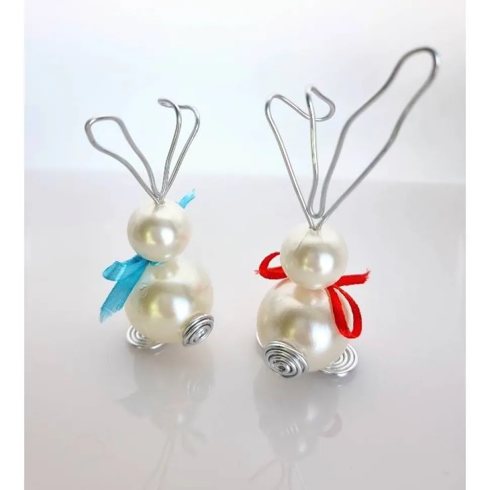 Die kleinen Hasen sind ca 6,5-9cm lang (3,5 cm/2,5 cm ohne Ohren) und ca 2 cm bzw 1,5 cm breit (um den Bauch)