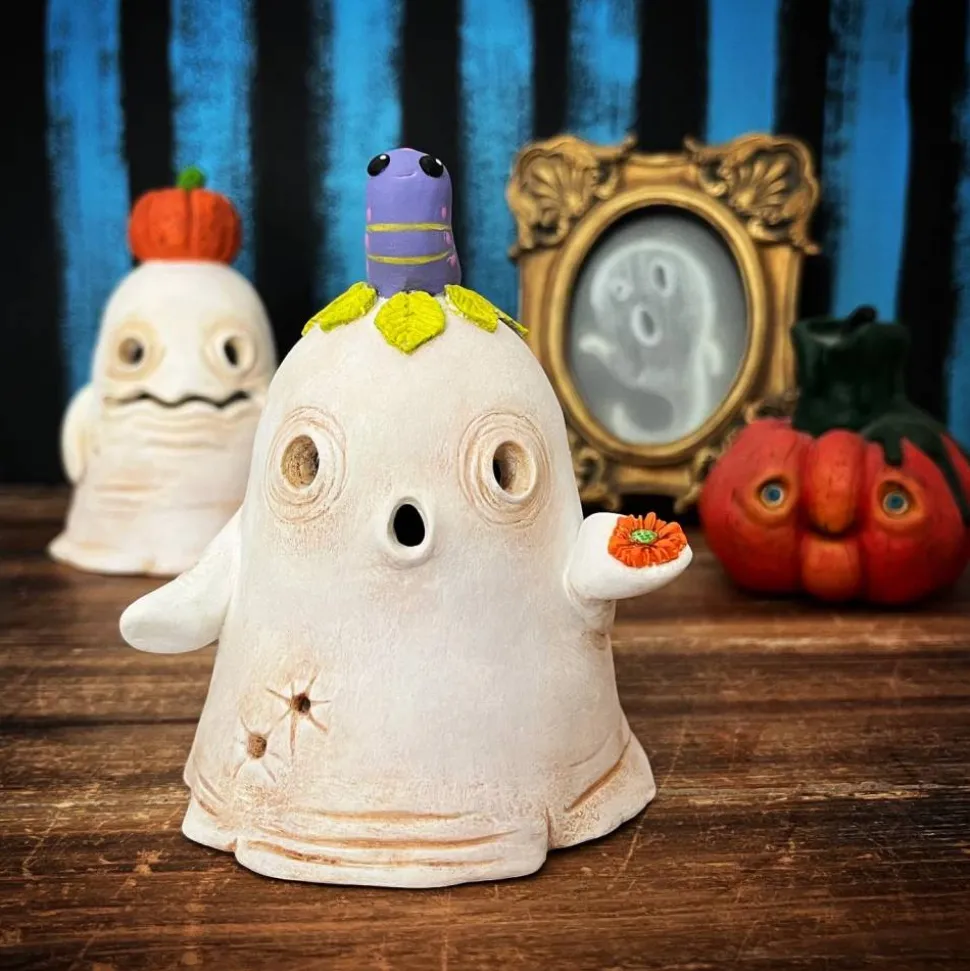 Dieser süße Geist mit Raupenfreund eignet sich perfekt zur Dekoration und das nicht nur zu Halloween.