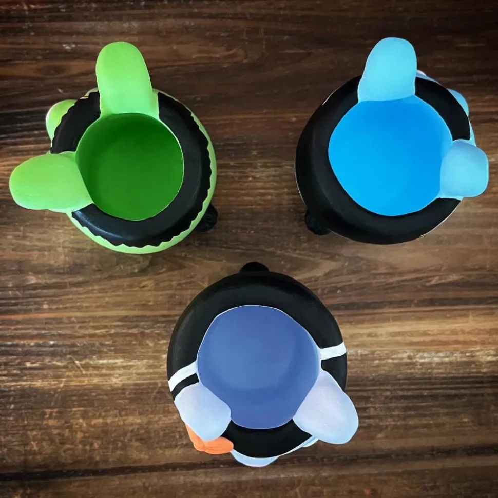 Er ist aus lufttrocknendem Ton gefertigt, mit Acrylfarben bemalt und einem Lack auf wasserbasis versiegelt.