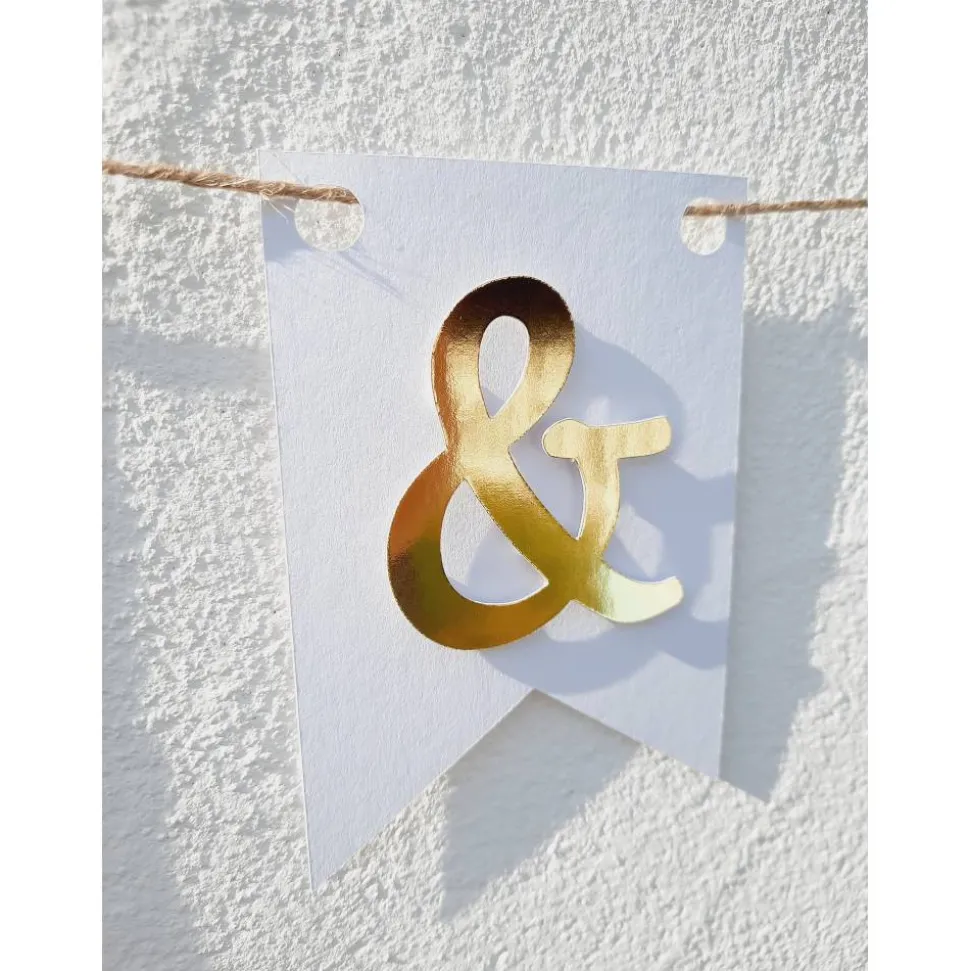 Der Schriftzug Mr & Mr ist in gold gehalten und tritt etwas plastisch hervor. Hierdurch bekommt die Girlande einen ganz besonderen Effekt.