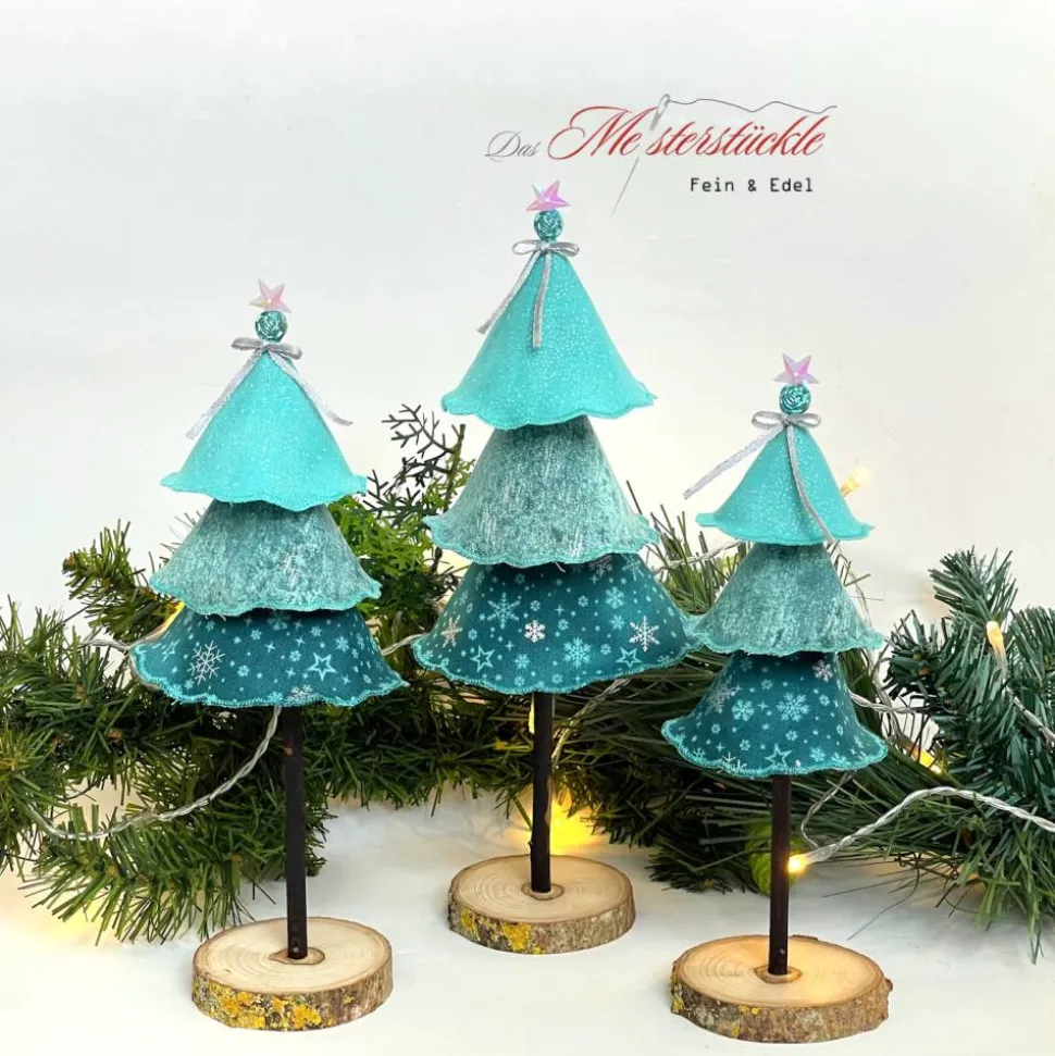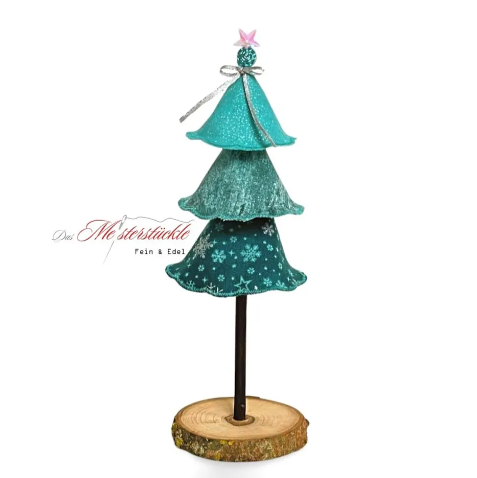 Entdecke ein einzigartiges Highlight für Dein Zuhause: Unsere Tannenbäumchen mit Holzsockel in der Trendfarbe eisblau petrolfarben sind die perfekte Weihnachtsdeko für Deine Fensterbank oder den Tisch.