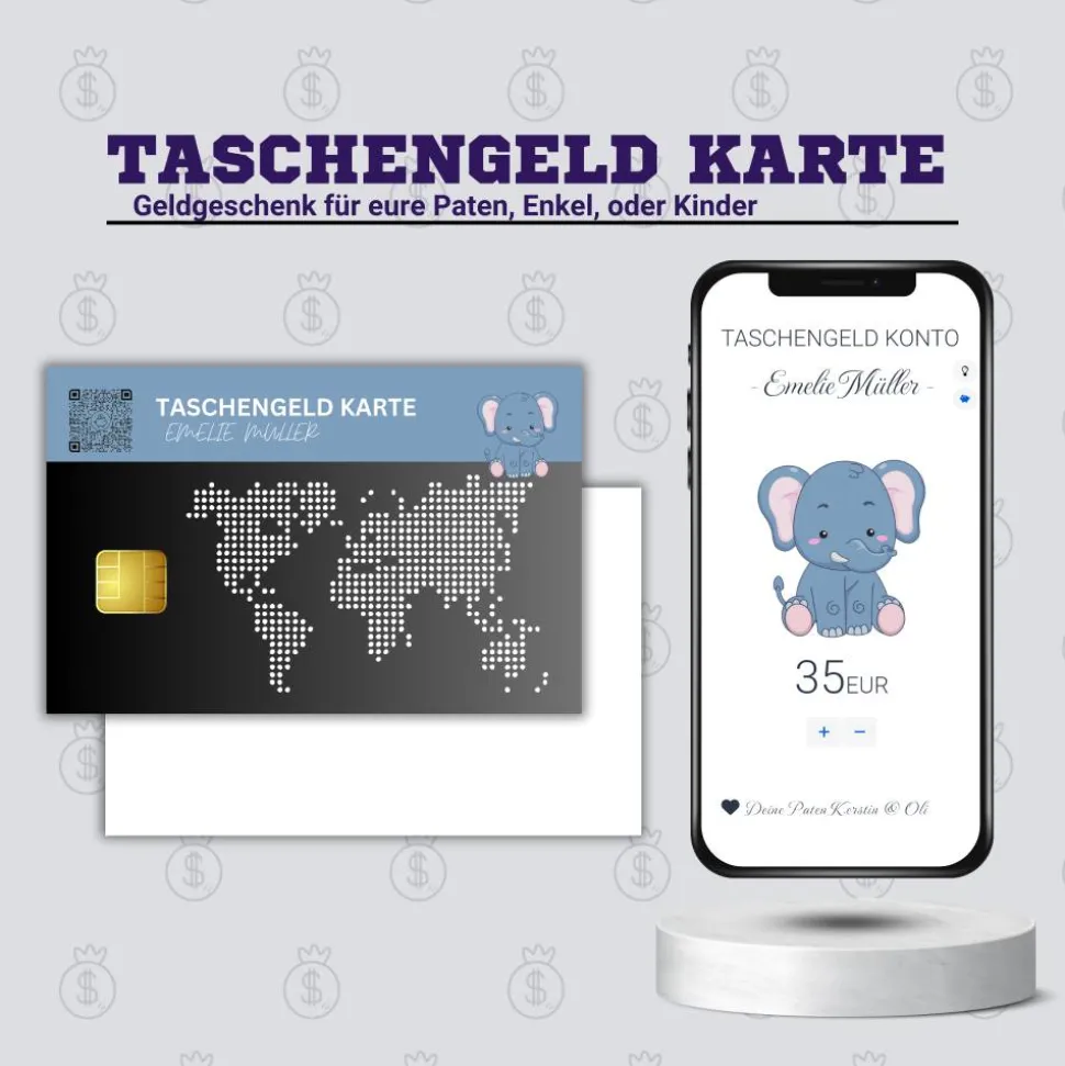 Taschengeld Karte | QrCode Geldgeschenk | Personalisiertes Geschenk für Kinder | Elefant