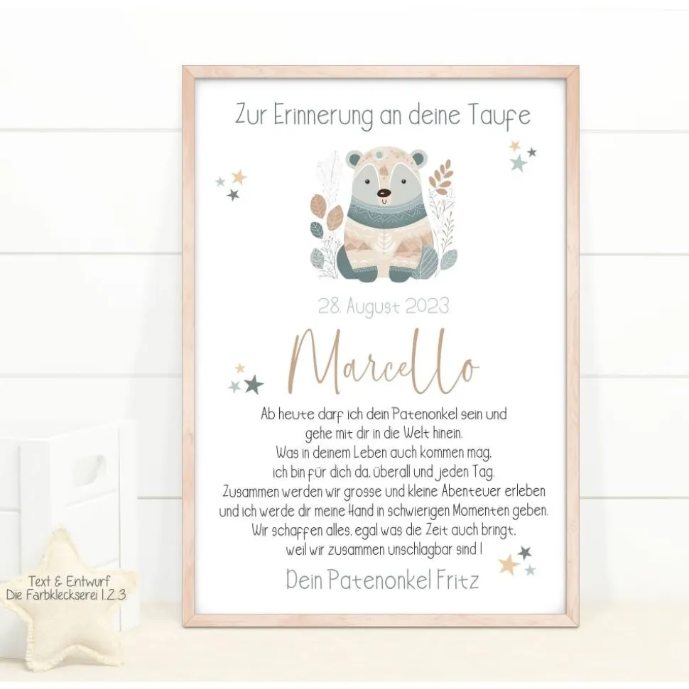 Die verschiedenen Tiere im beliebten Boho Stil machen den Patenbrief zu etwas ganz Besonderem.