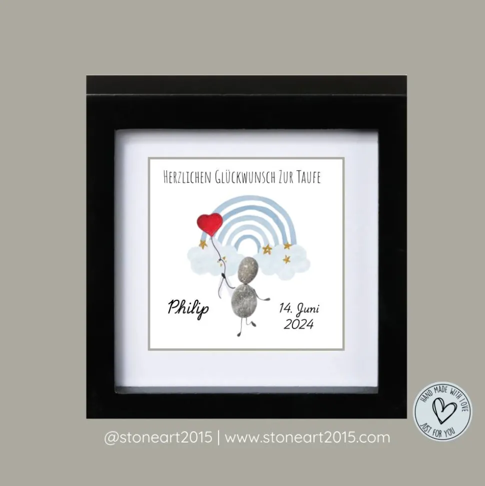 Dieses Natursteinbild ist ein echter Blickfang zur Tauferinnerung und bringt Freude und Wärme ins Kinderzimmer. Ob als Geschenk von Paten, Großeltern oder Eltern – jedes Bild wird nach deiner Bestellung individuell angefertigt und ist somit ein Unikat.
