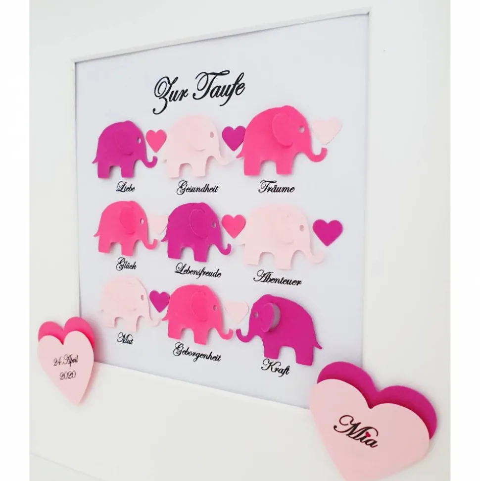 Über den kleinen Elefanten können Sie den speziellen Anlass bestimmen z.B. Taufe oder Geburt.