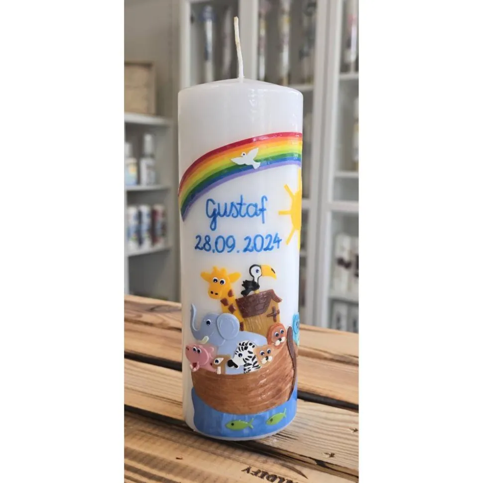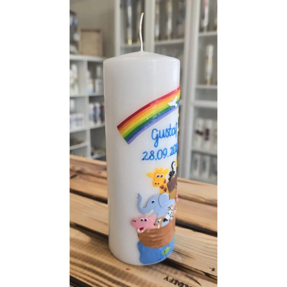 Wir personalisieren die Kerze auch mit dem Namen und dem Datum.
