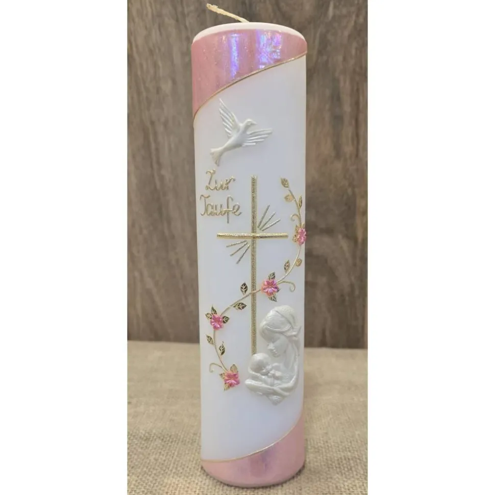 Taufkerze 25×6 – Irisierend – In verschiedenen Farben –