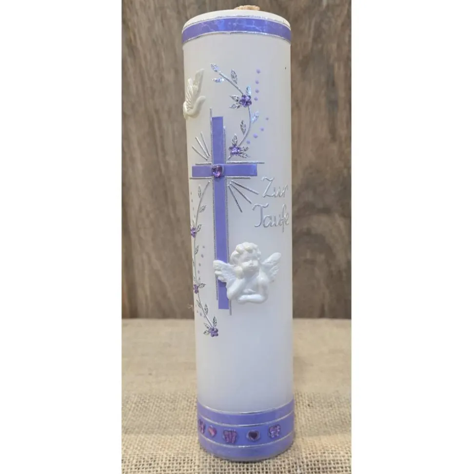 Taufkerze 25×6 Silber-marmoriert – In verschiedenen Farben –