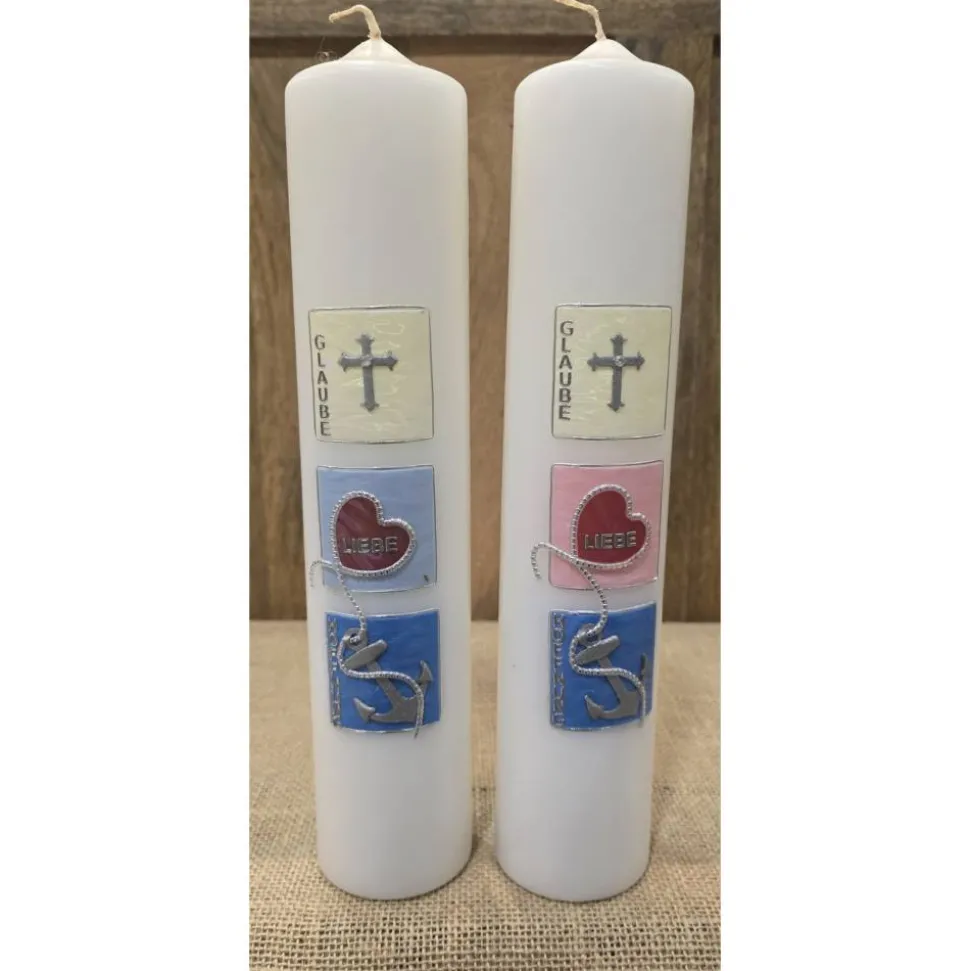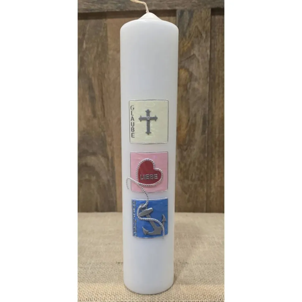 Taufkerze 30×6 – Holografisch – „Glaube-Liebe-Hoffnung“ –