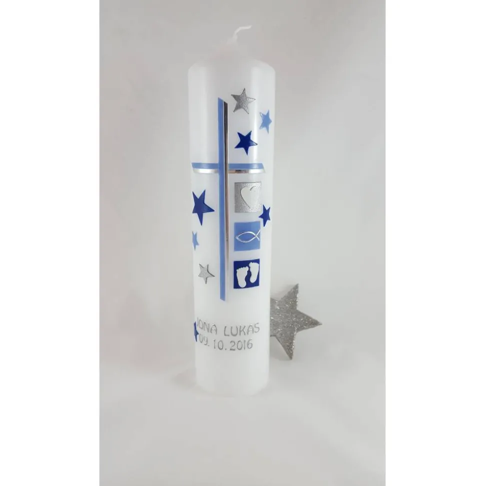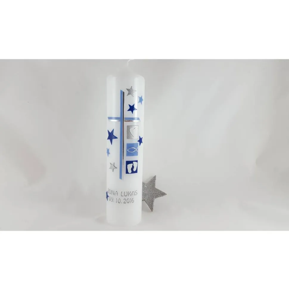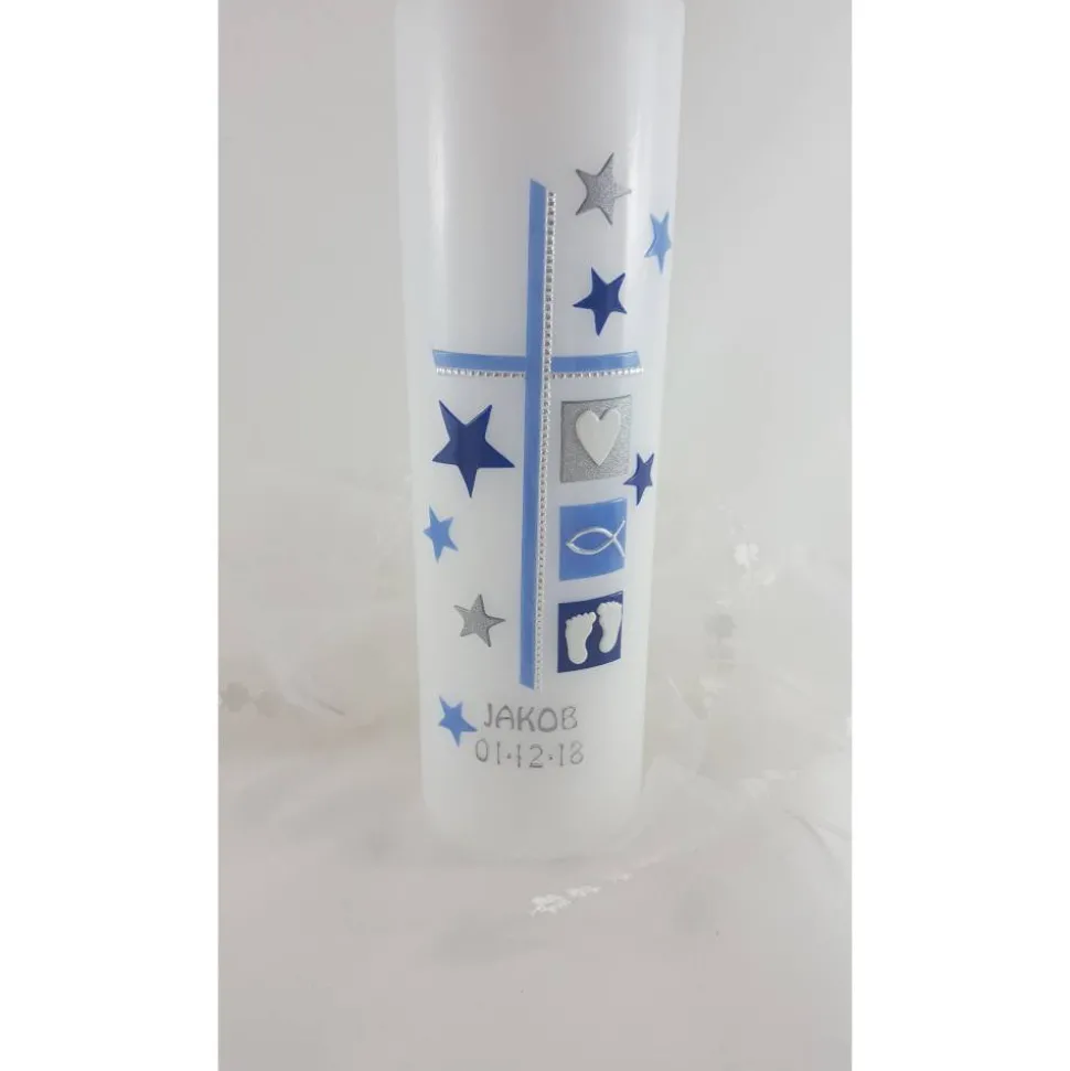 verschiedene Größen zur Auswahl, auf den Fotos ist die Taufkerze in der Größe 25 x 6 cm zu sehen.