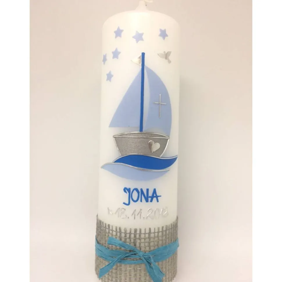 Taufkerze Boot Junge oder Mädchen, Mit Jesus in einem Boot, Arche, Arche Noah, maritime Kerze zur Taufe