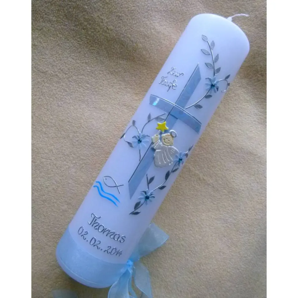 Die Verzierung auf der Kerze wird in liebevoller Handarbeit für Sie erstellt.