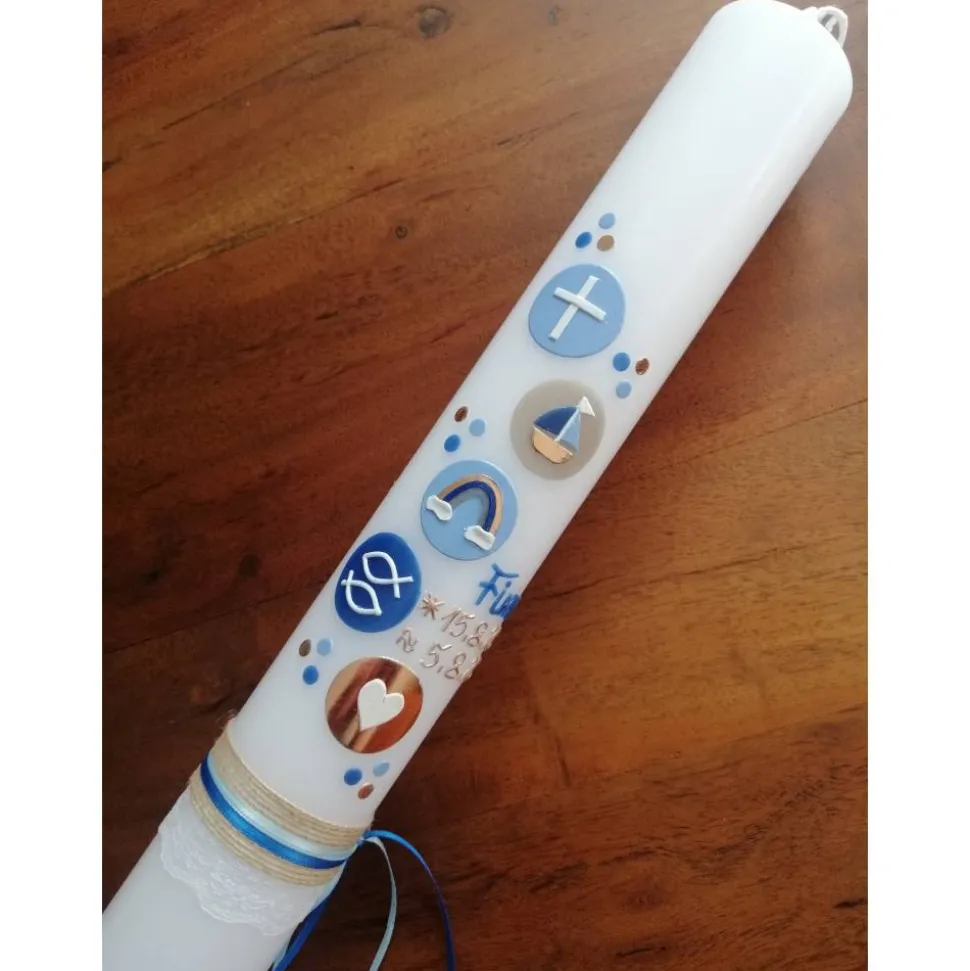 Die Taufkerze ist 40×4 cm oder nach wünsch 40×5 cm groß.
