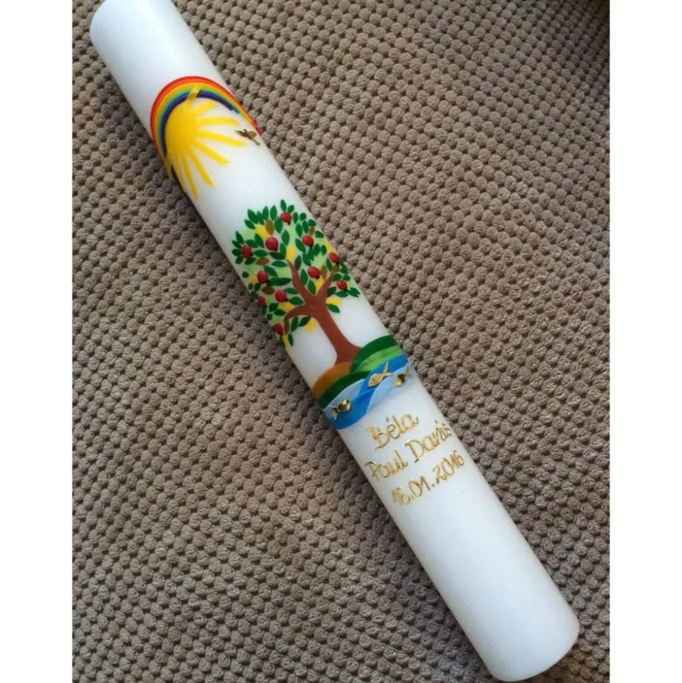 Die Taufkerze Lebensbaum hat die Größe 40 x 5 cm.