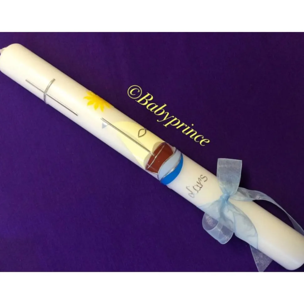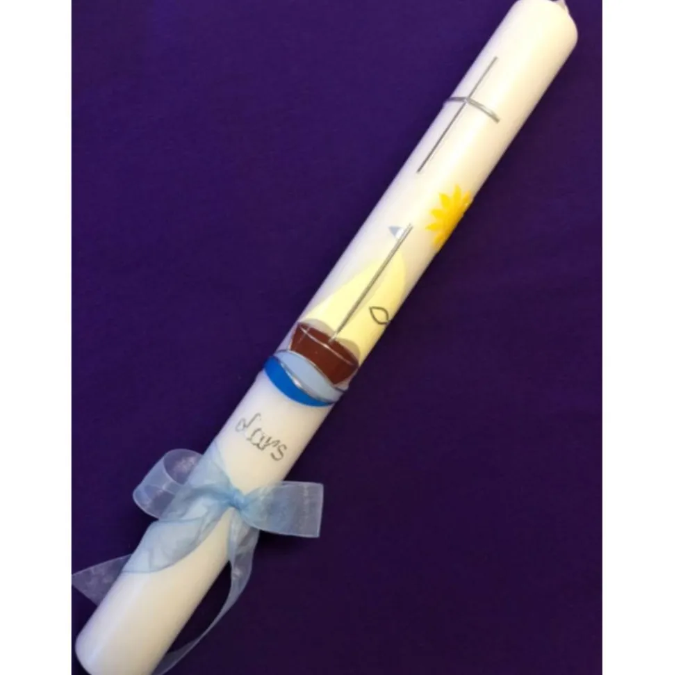 Taufkerze oder Kommunionskerze „Mit Jesus in einem Boot.“ mit hochwertigen Wachsverzierungen