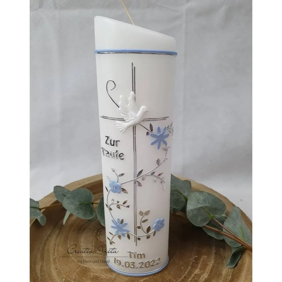 Gerne personalisieren wir die Kerze auch mit dem Namen des Täuflings und das Taufdatum. Bitte teilen Sie uns dies entsprechend mit.