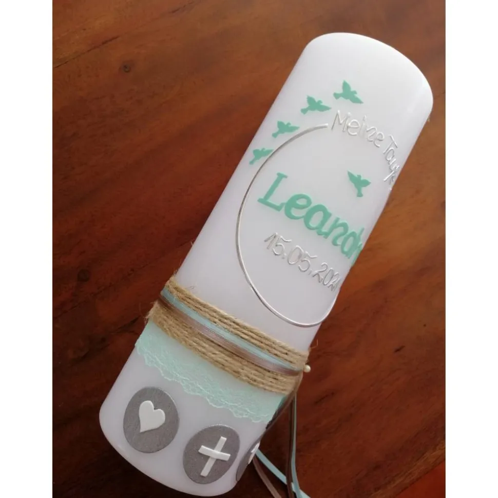 Taufkerze Kreuz Herz Taube