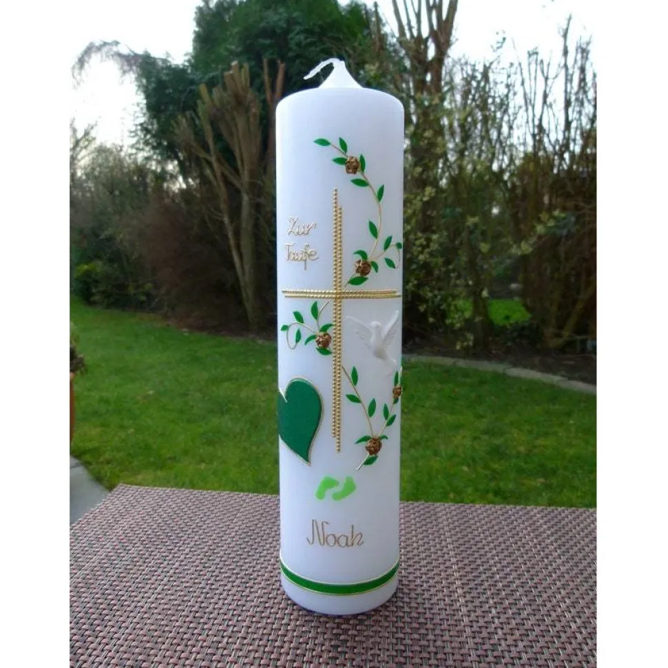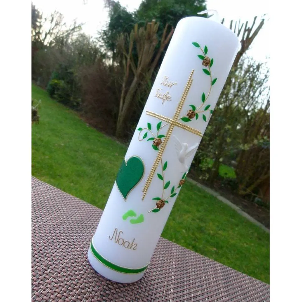 Taufkerze Kreuz mit hochwertigen Wachsverzierungen