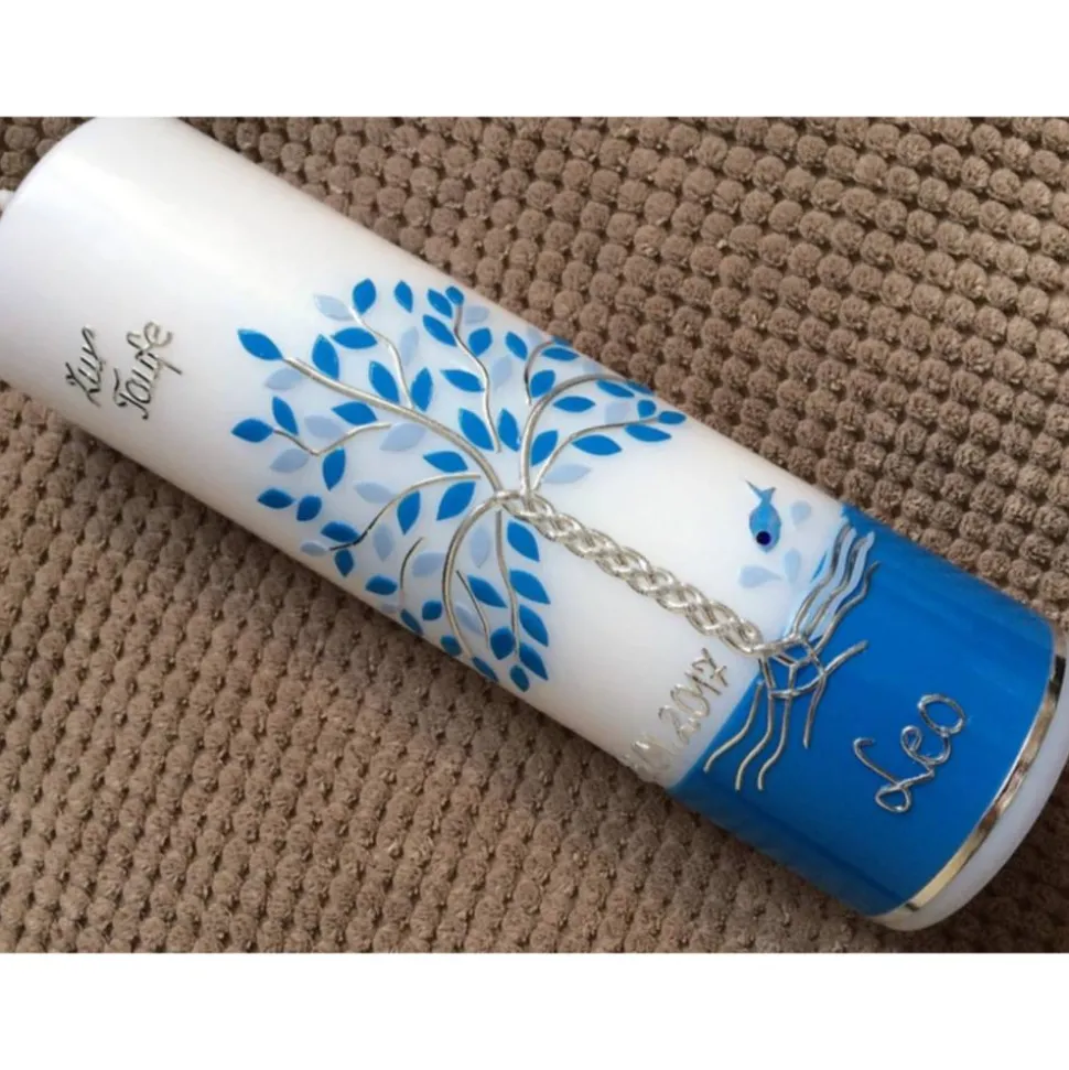 Die Verzierung auf der Kerze wird von mir in liebevoller Handarbeit für Sie erstellt.