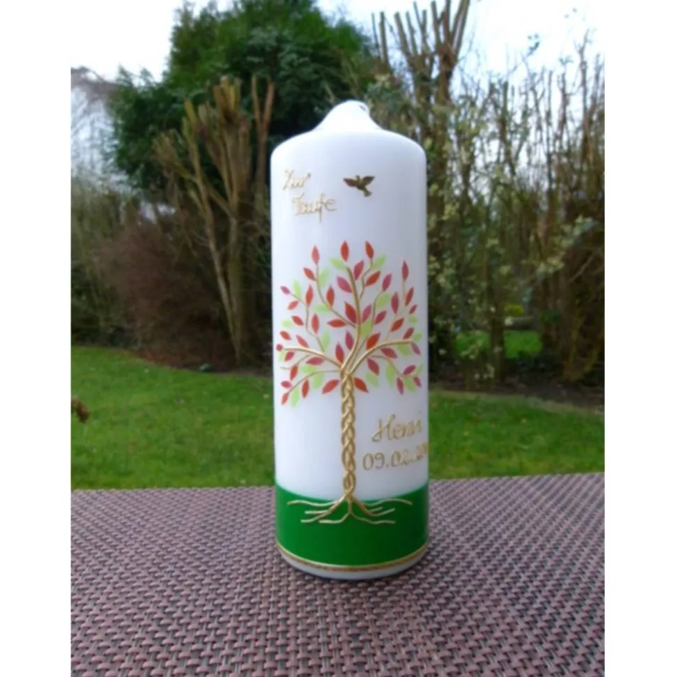 Taufkerze Lebensbaum mit hochwertigen Wachsverzierungen