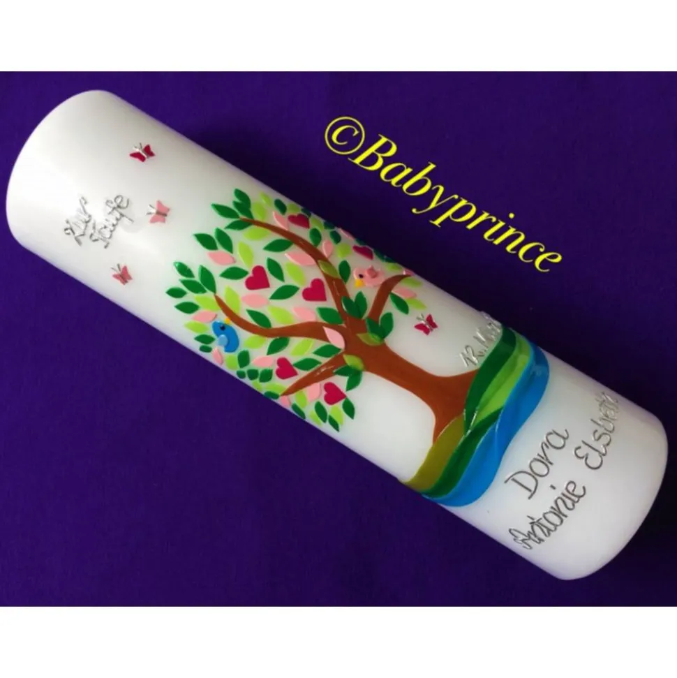 Taufkerze Lebensbaum mit hochwertigen Wachsverzierungen