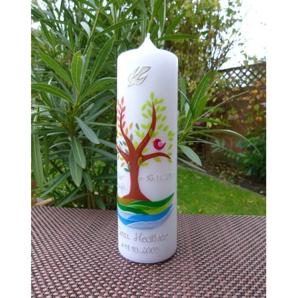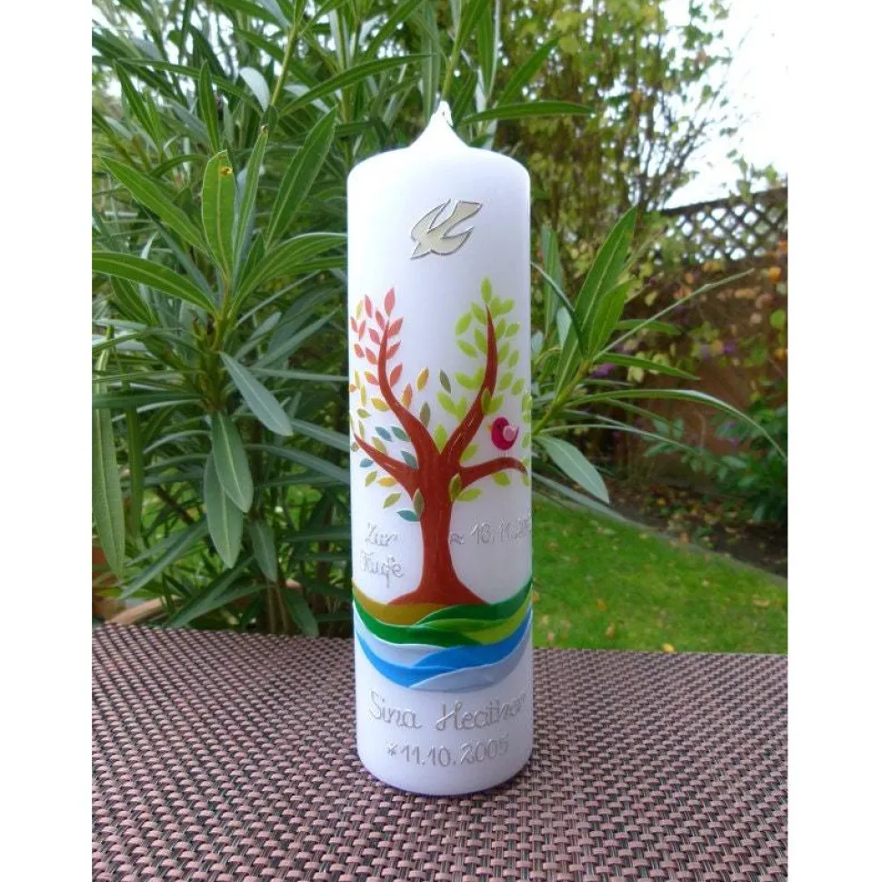 Taufkerze Lebensbaum mit hochwertigen Wachsverzierungen