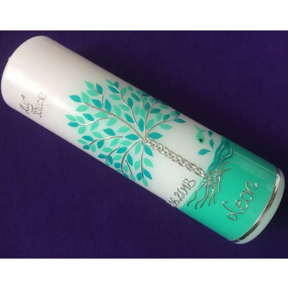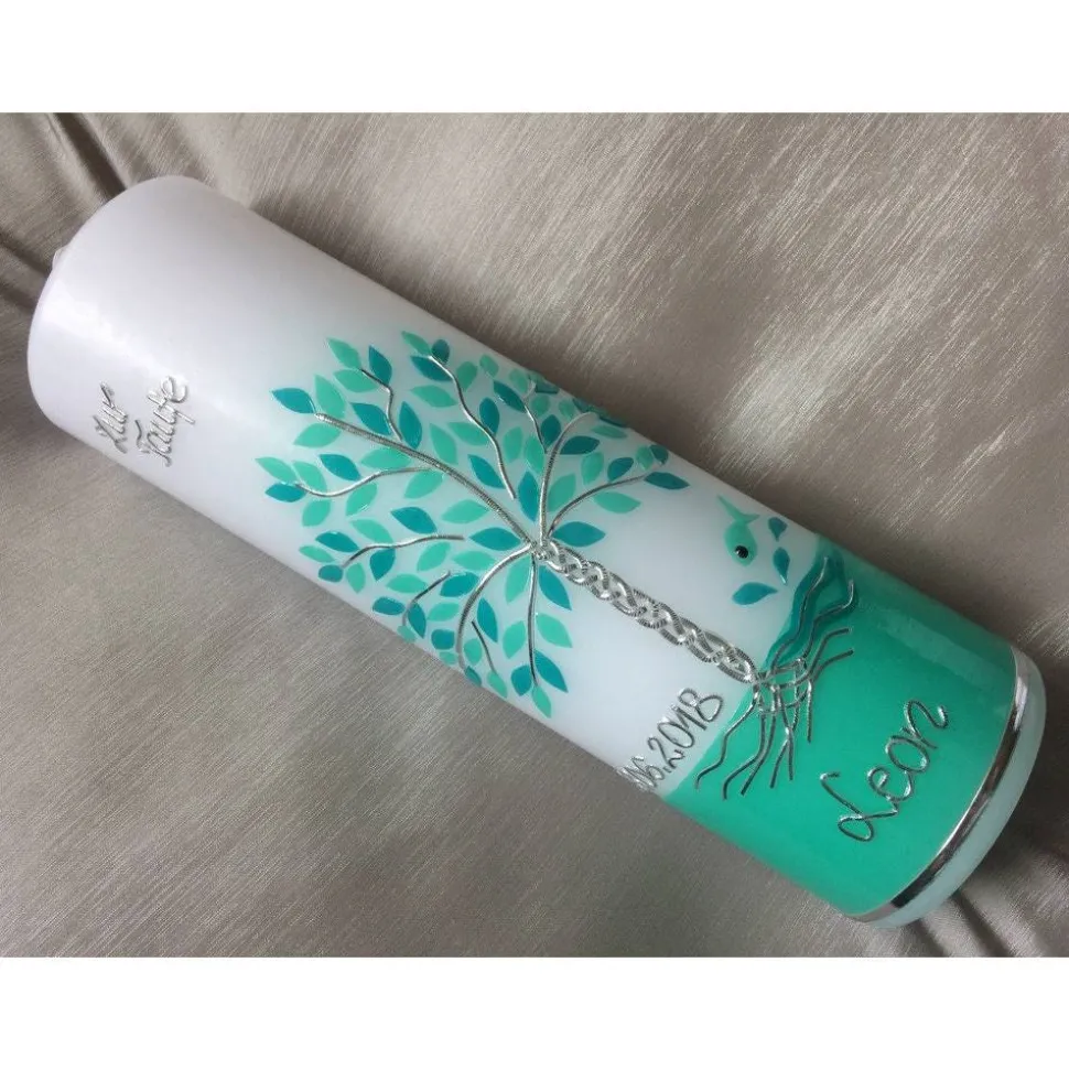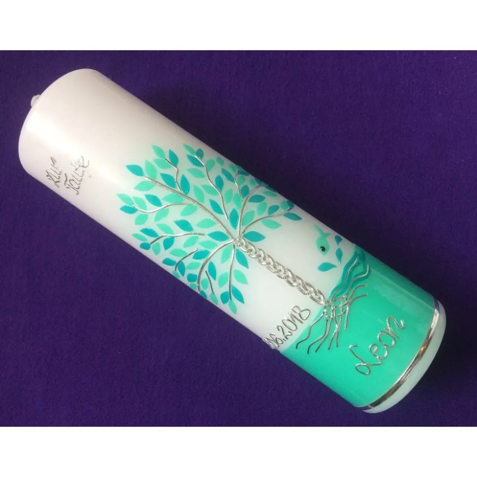Taufkerze Lebensbaum mit hochwertigen Wachsverzierungen