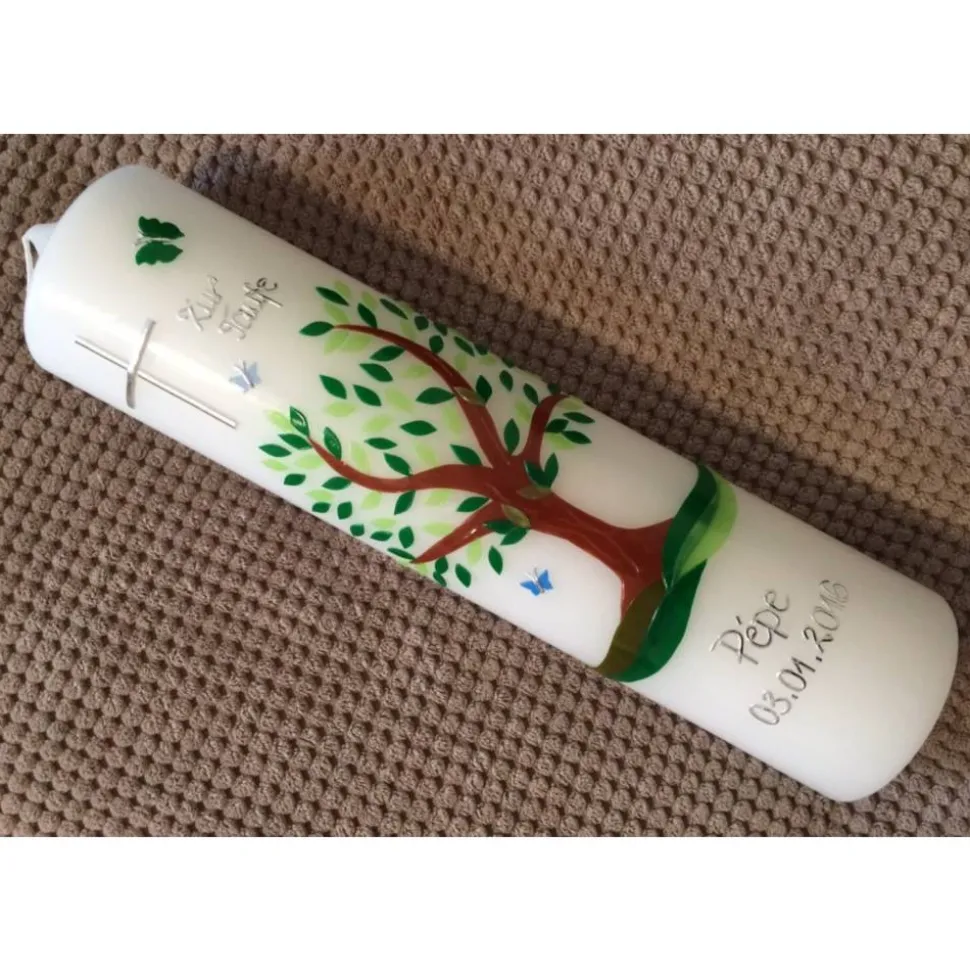 Taufkerze Lebensbaum mit hochwertigen Wachsverzierungen