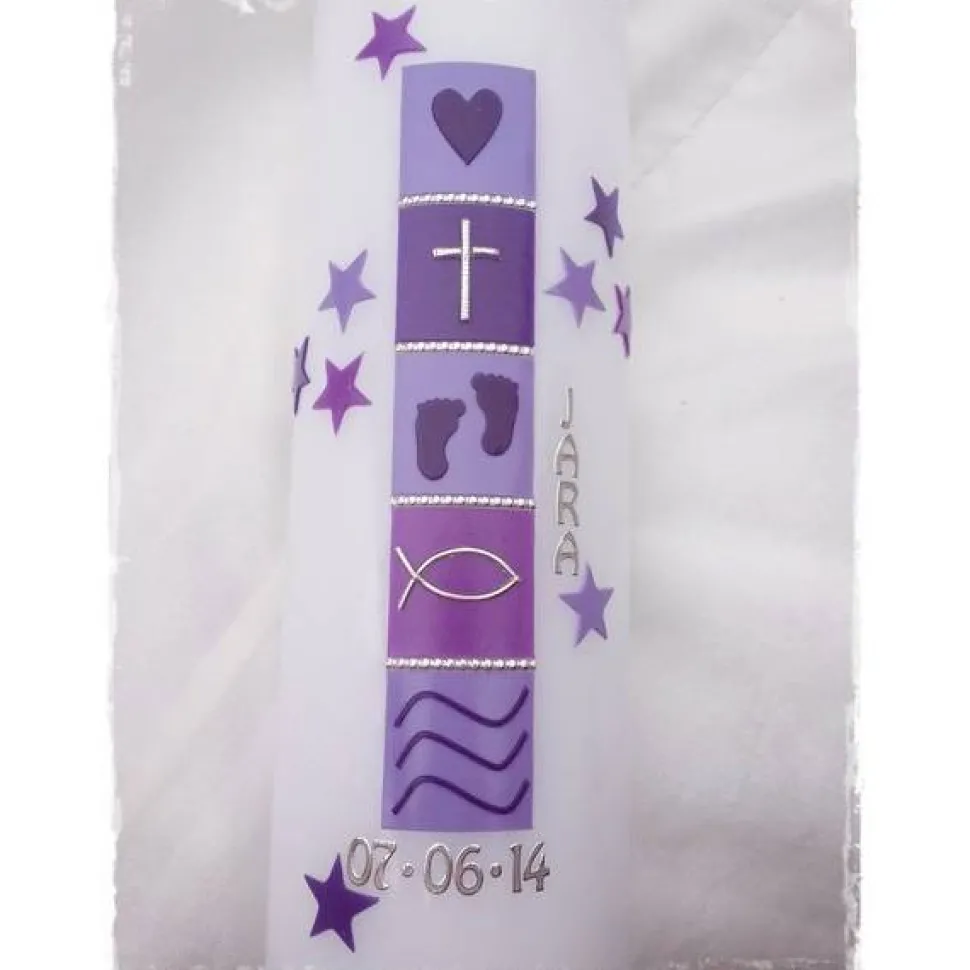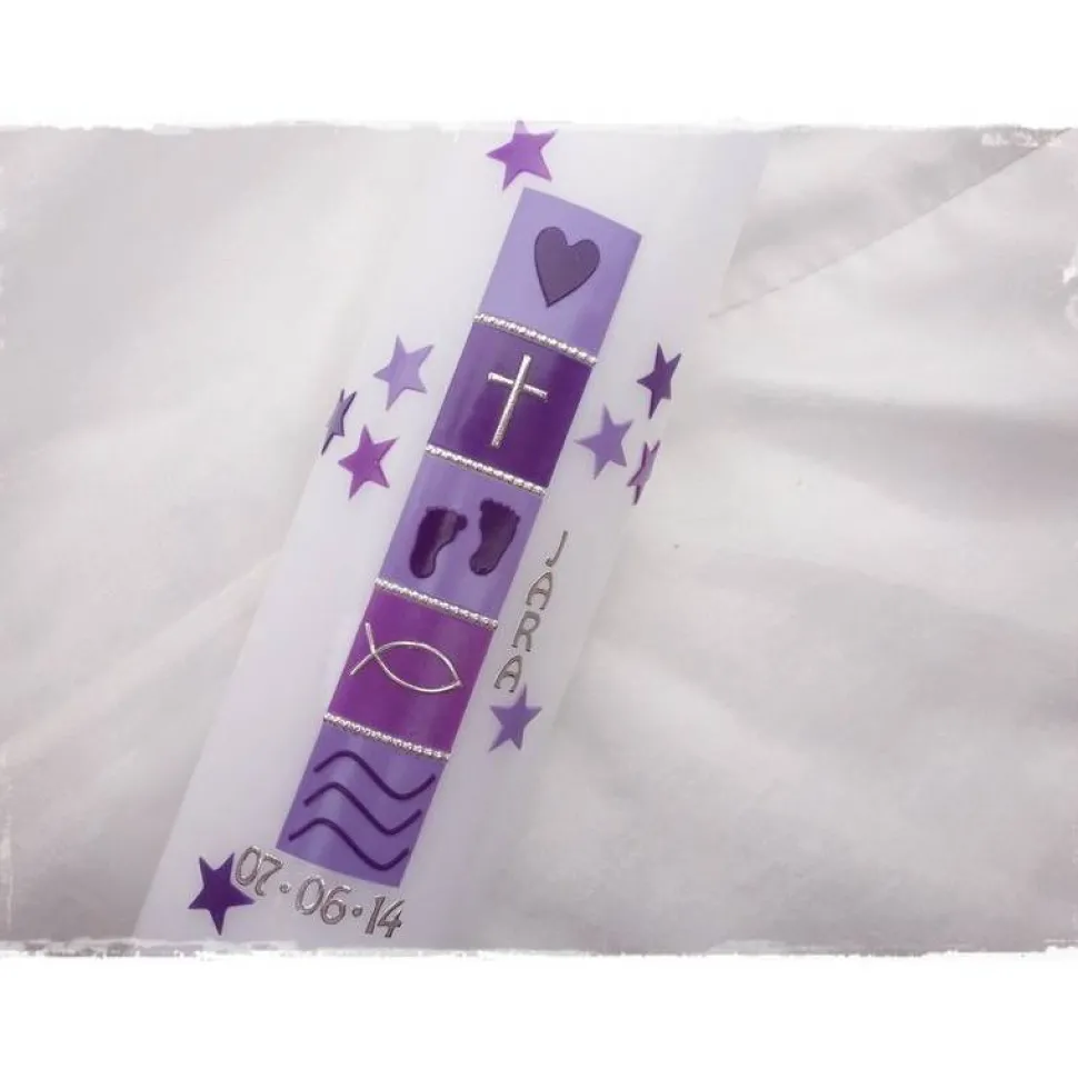 Sie können die Taufkerze in verschiedenen Größen erhalten, auf dem Bild ist sie in der Größe 250 x 70 mm zu sehen.