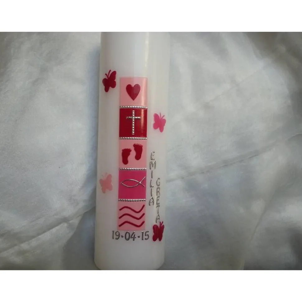 das Motiv dieser Taufkerze wird aus Wachs gefertigt
