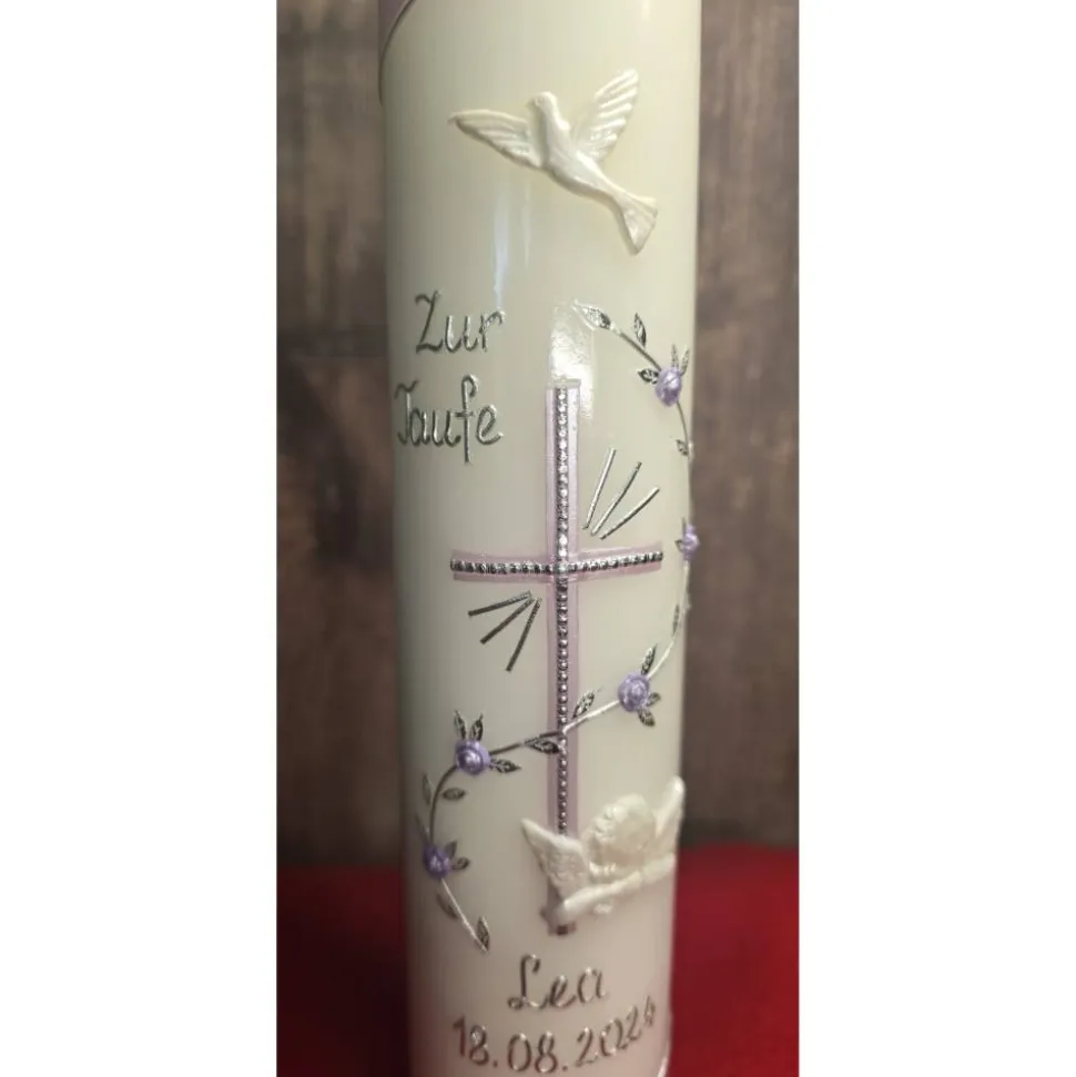 Bitte bei der Bestellung unbedingt angeben ob der Schriftzug – ZUR TAUFE – auf die Kerze angebracht werden soll.