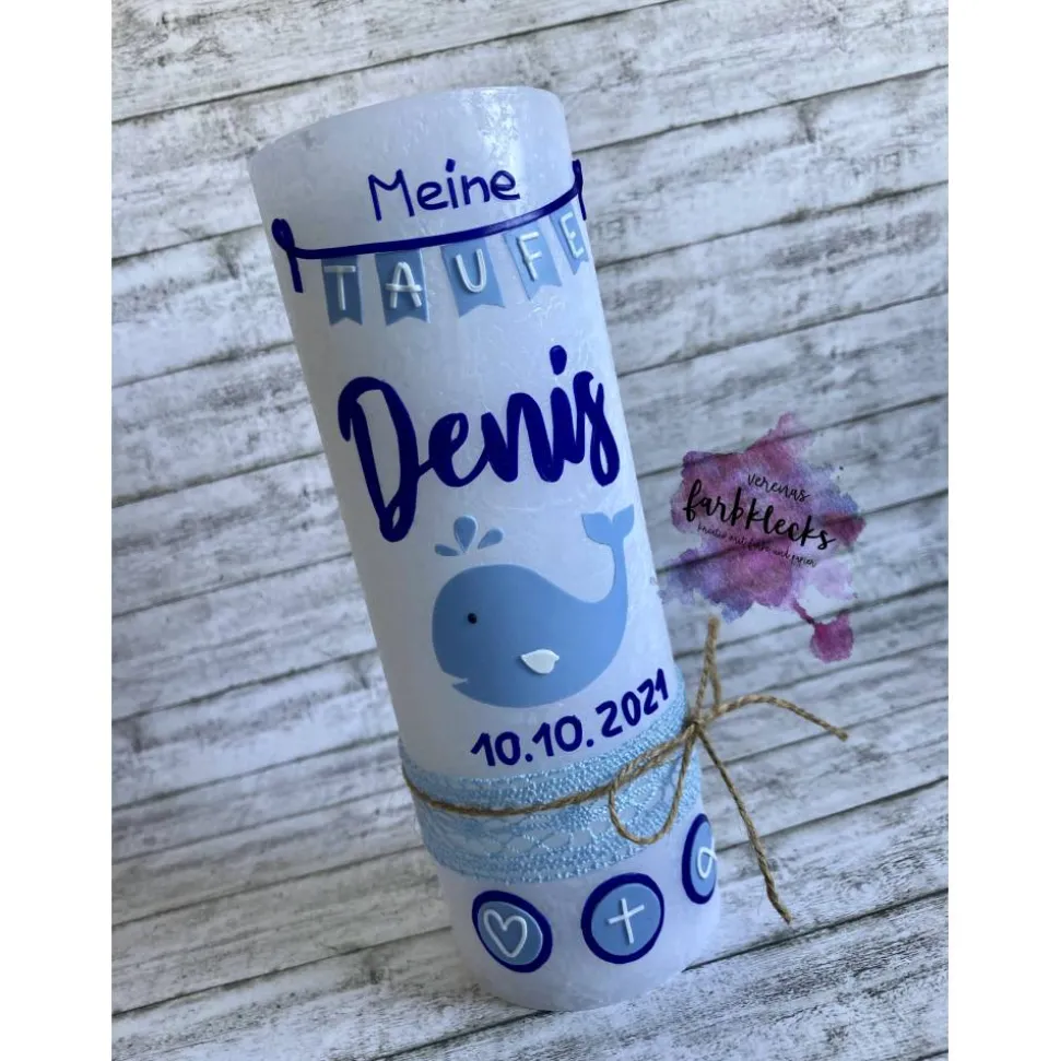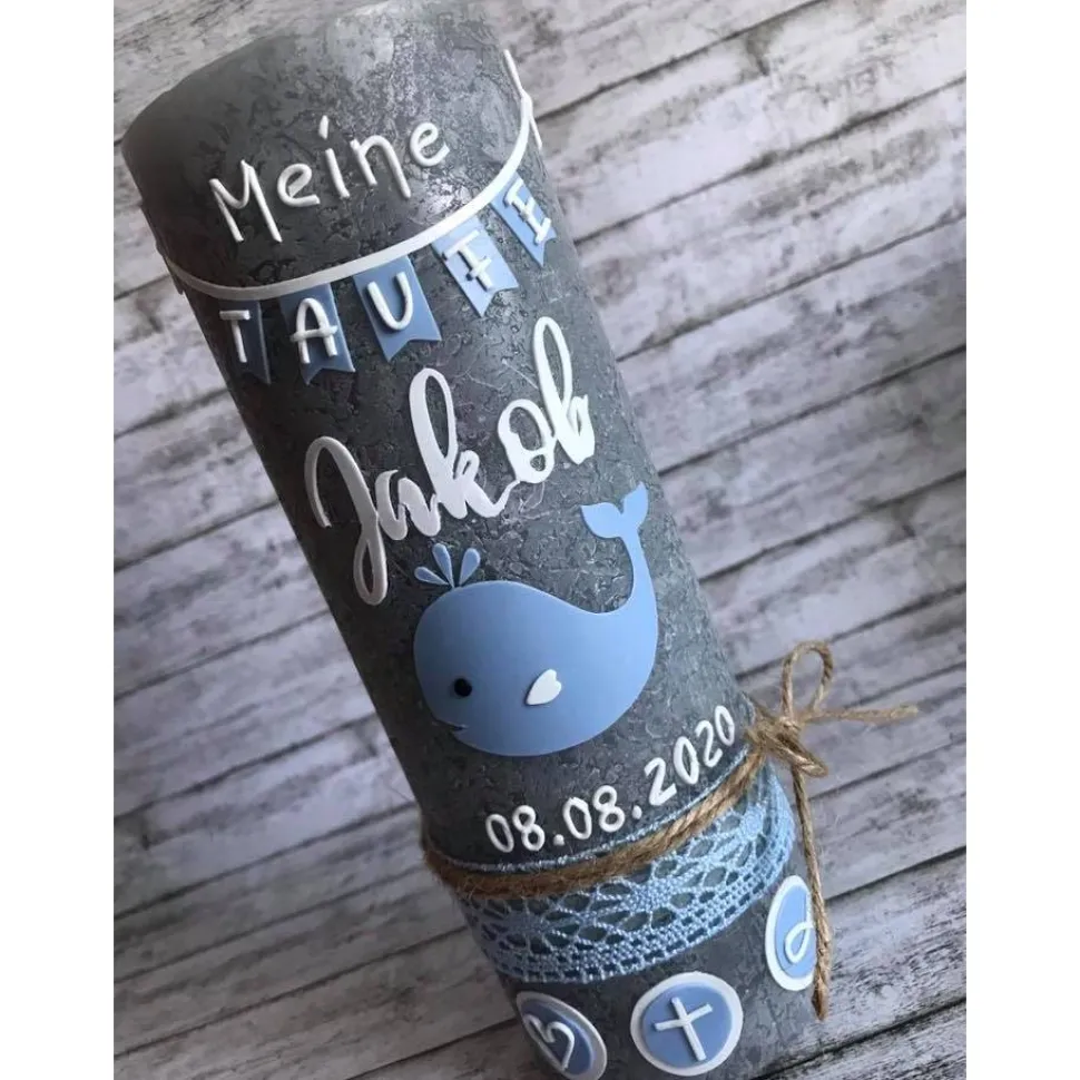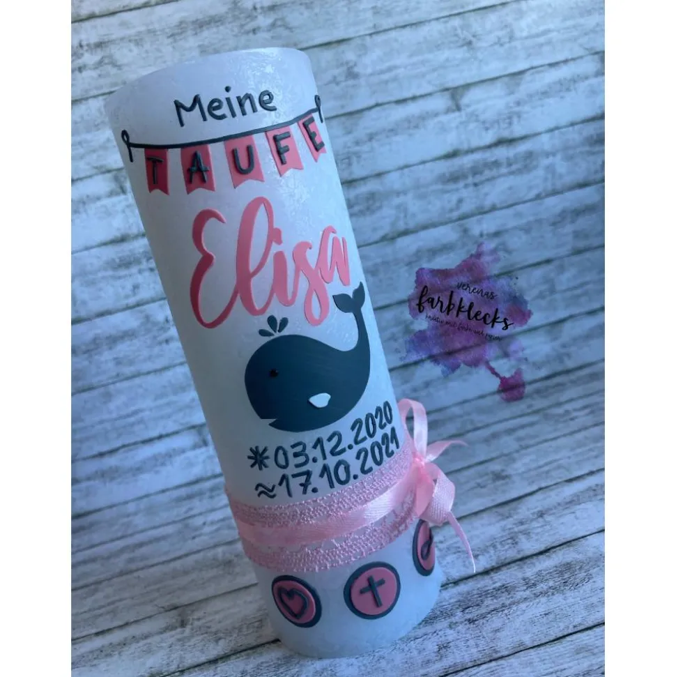 Liebevoll von Hand gestaltet, verziehrt mit Name und Tauf- oder Geburtsdatum.