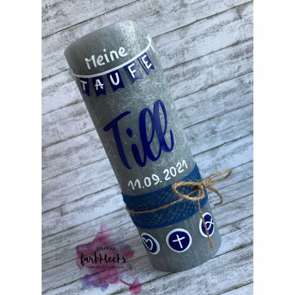 Liebevoll von Hand gestaltet, verziehrt mit Name und Tauf- oder Geburtsdatum.