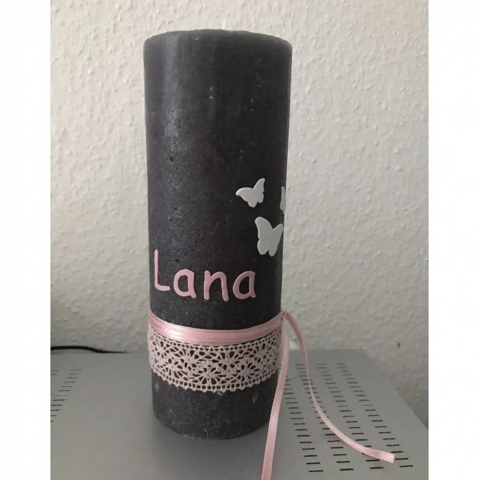 Liebevoll von Hand gestaltet, verziehrt mit Name und Tauf- oder Geburtsdatum.