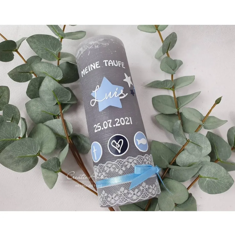 Der Aufdruck „Meine Taufe“ der Namen das Datum wird selbstverständlich nach Ihren Angaben personalisiert.