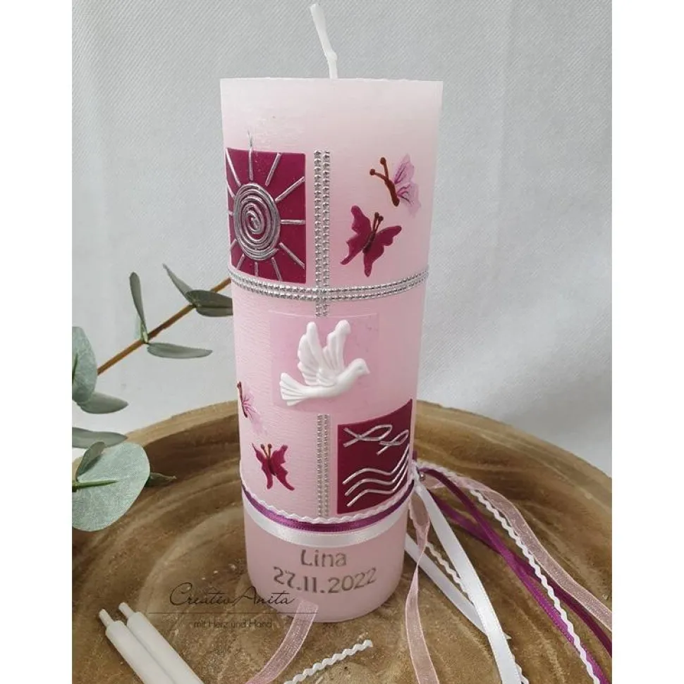 Wunderschöne handgefertigte Rustikkerze in rosé.