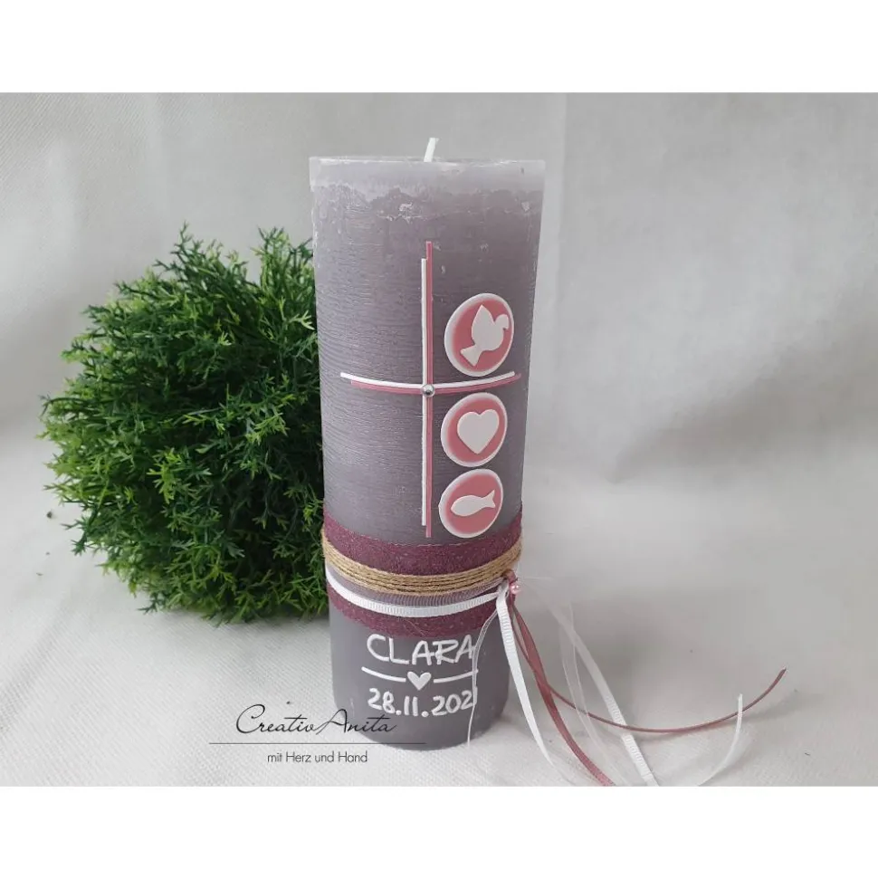 Tolle Taufkerze – Rustikkerze in Schlamm – Taupe – Braun!