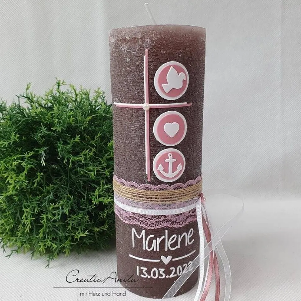 Tolle Taufkerze – Erinnerungskerze Sternenkind – Rustikkerze in Schlamm – Taupe – Braun!