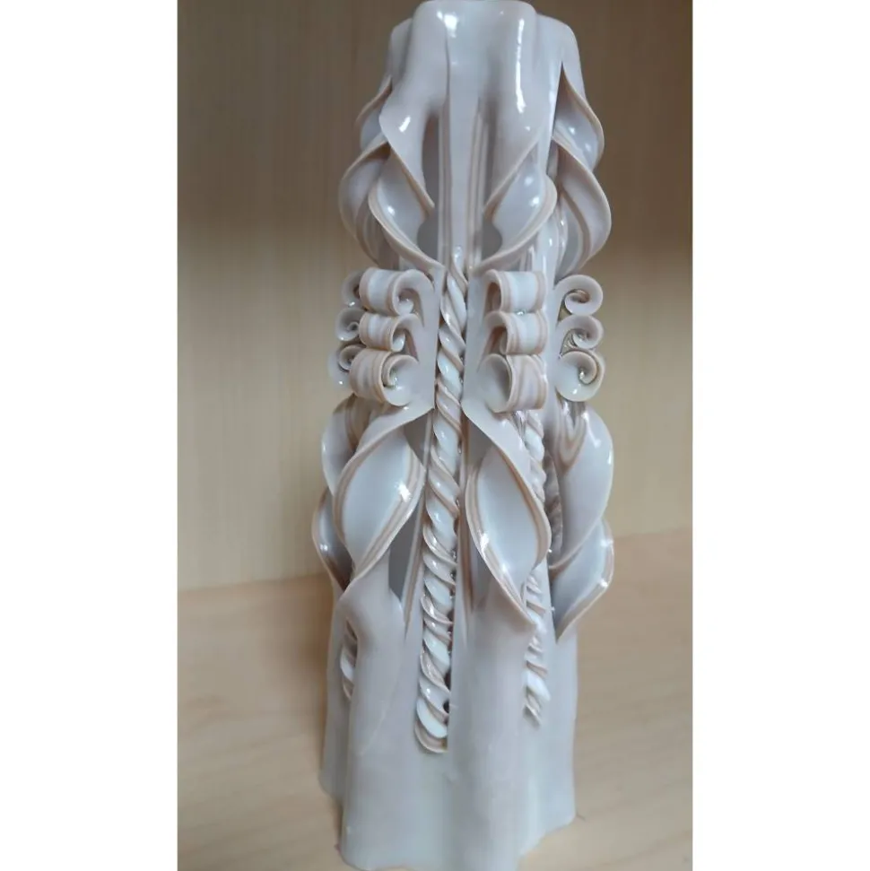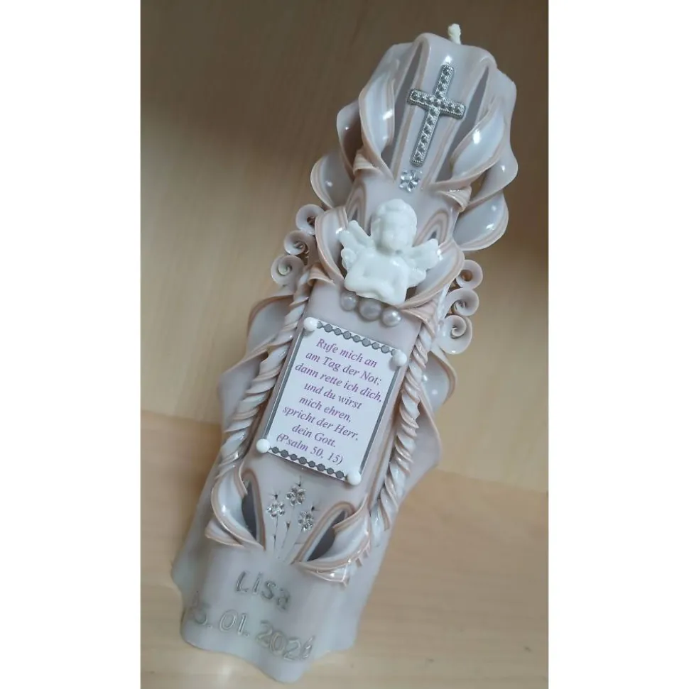 Die Schnitzereien an der Kerze lassen das Licht hindurch scheinen, wodurch die Kerze eine ganz besondere Atmosphäre ausstrahlt.
