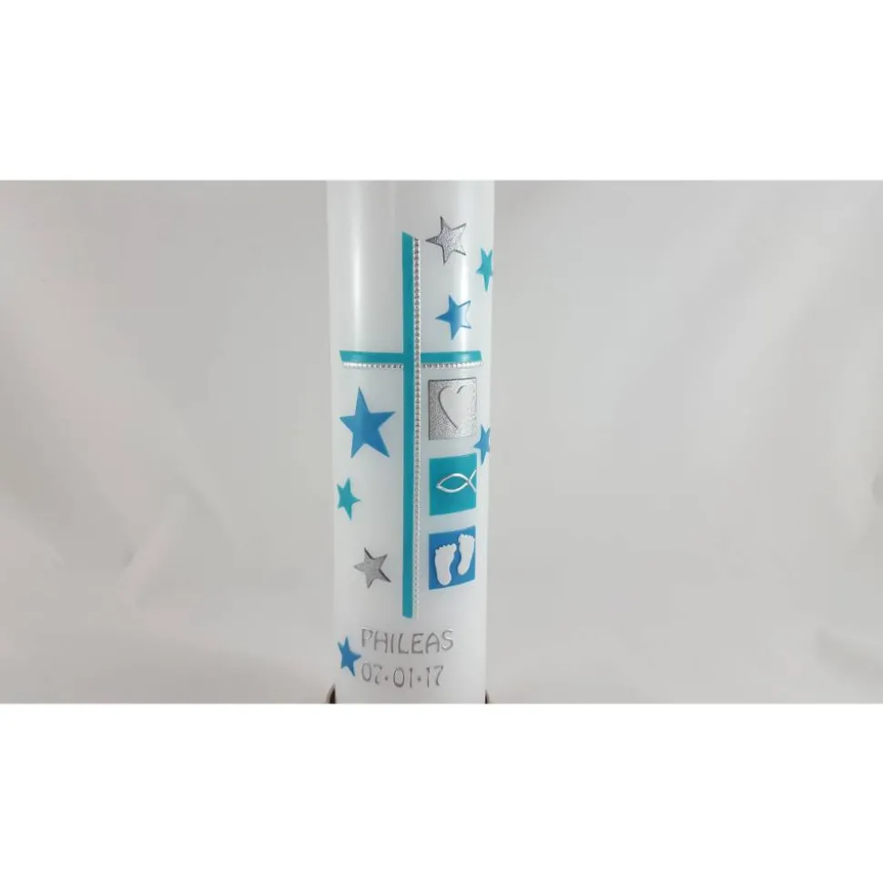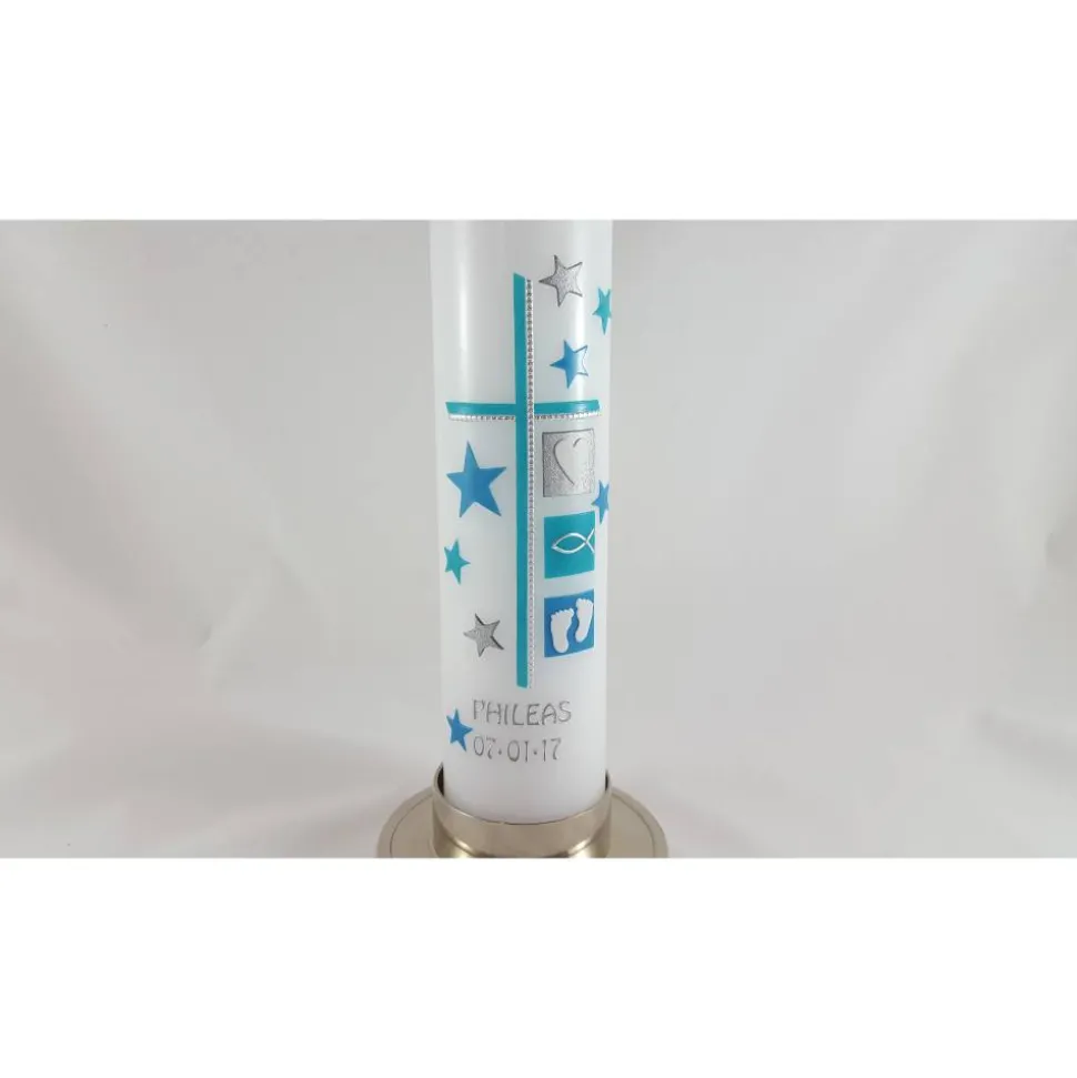 Diese Taufkerze können Sie optional mit oder ohne Kerzenhalter bestellen.