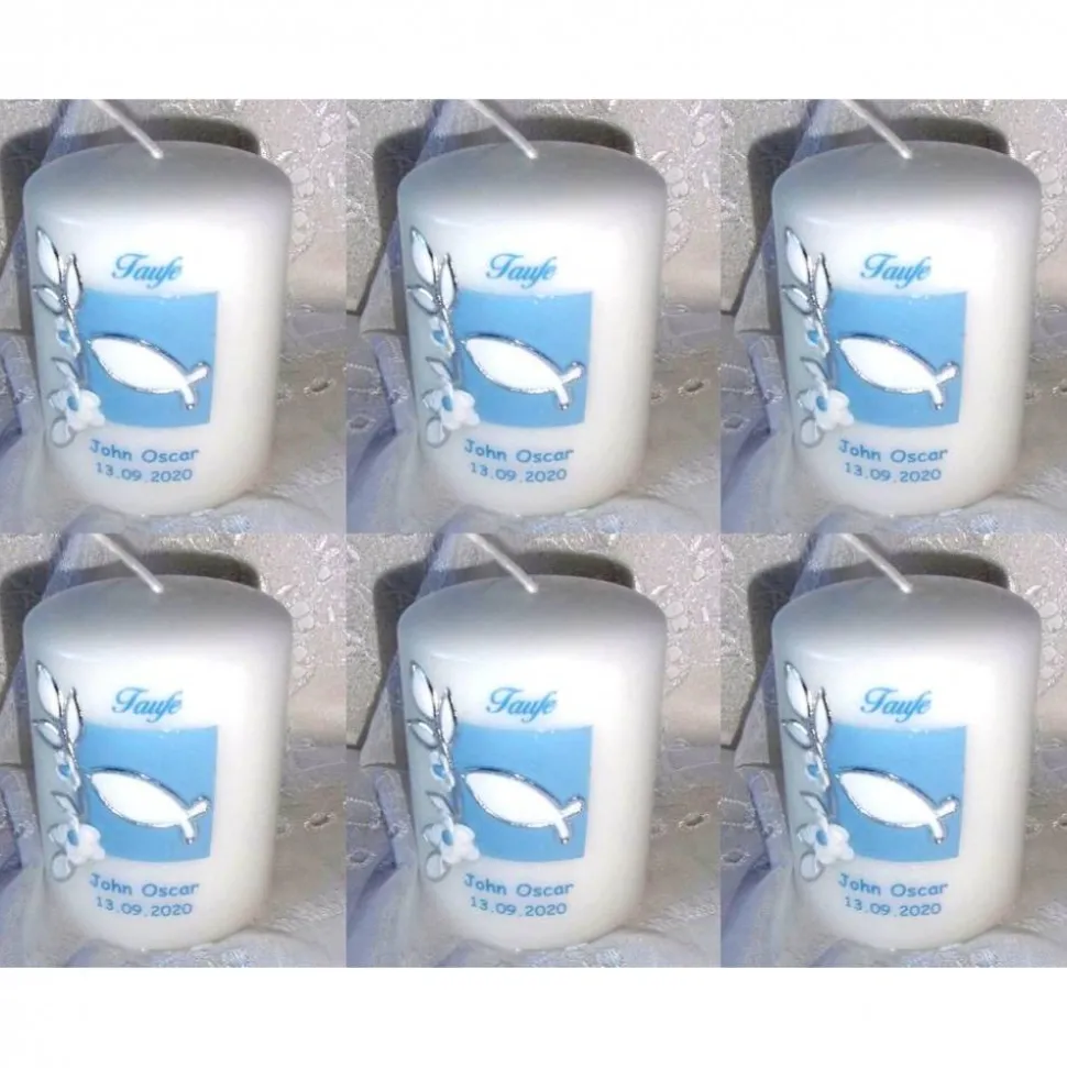 Bei dem angebotenen SET handelt es sich um eine mit christlichen Symbolen gestaltete Tauf-oder Kommunionskerze in Vollwachsauflage.und 6 Stck passende Gastgeschenke-Kerzchen als kleines Dankeschön und zur Erinnerung für Ihre Gäste.