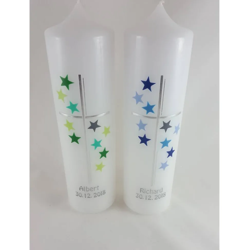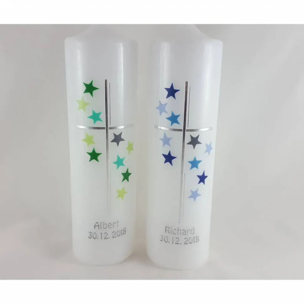 schlichte Taufkerzen in der Größe 25 x 6 Zentimeter (andere Größen jederzeit möglich, bitte kontaktieren Sie uns)