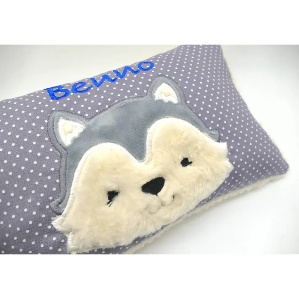 Taufkissen Kuschelkissen Kindergartenkissen Geburtsgeschenk Husky – Kleiner Wolf